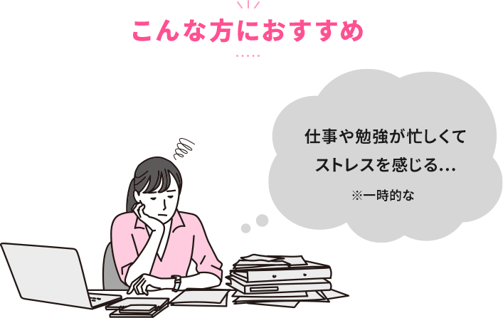機能性関与成分GABAの働きで仕事や勉強などによる一時的な心理的ストレスや疲労感を緩和します。