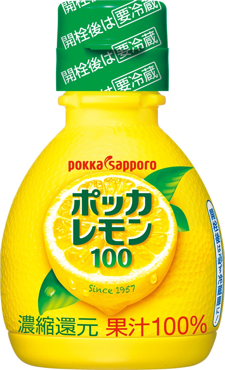 「ポッカレモン100(70ml)」は1994年に「食卓レモン」として発売を開始し、今年30周年を迎えました。レモンをイメージした黄色い丸形の容器で、多くのお客様に食卓はじめ様々な使い方でご愛顧いただいています。「ポッカレモン100」は100%レモン果汁でレモン本来のまろやかでコクのある酸味は、お料理やお飲物に合い、食材のおいしさを引き立てます。70mlの小型タイプは、やわらかく押し出しやすいボトルを採用し、からあげにチョイかけやつけレモンなど、用途に合わせご活用いただけます。