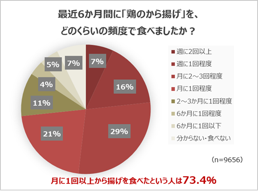 ・からあげを月1回以上食べている人は73.4%となり、多くの方がからあげを食べています。