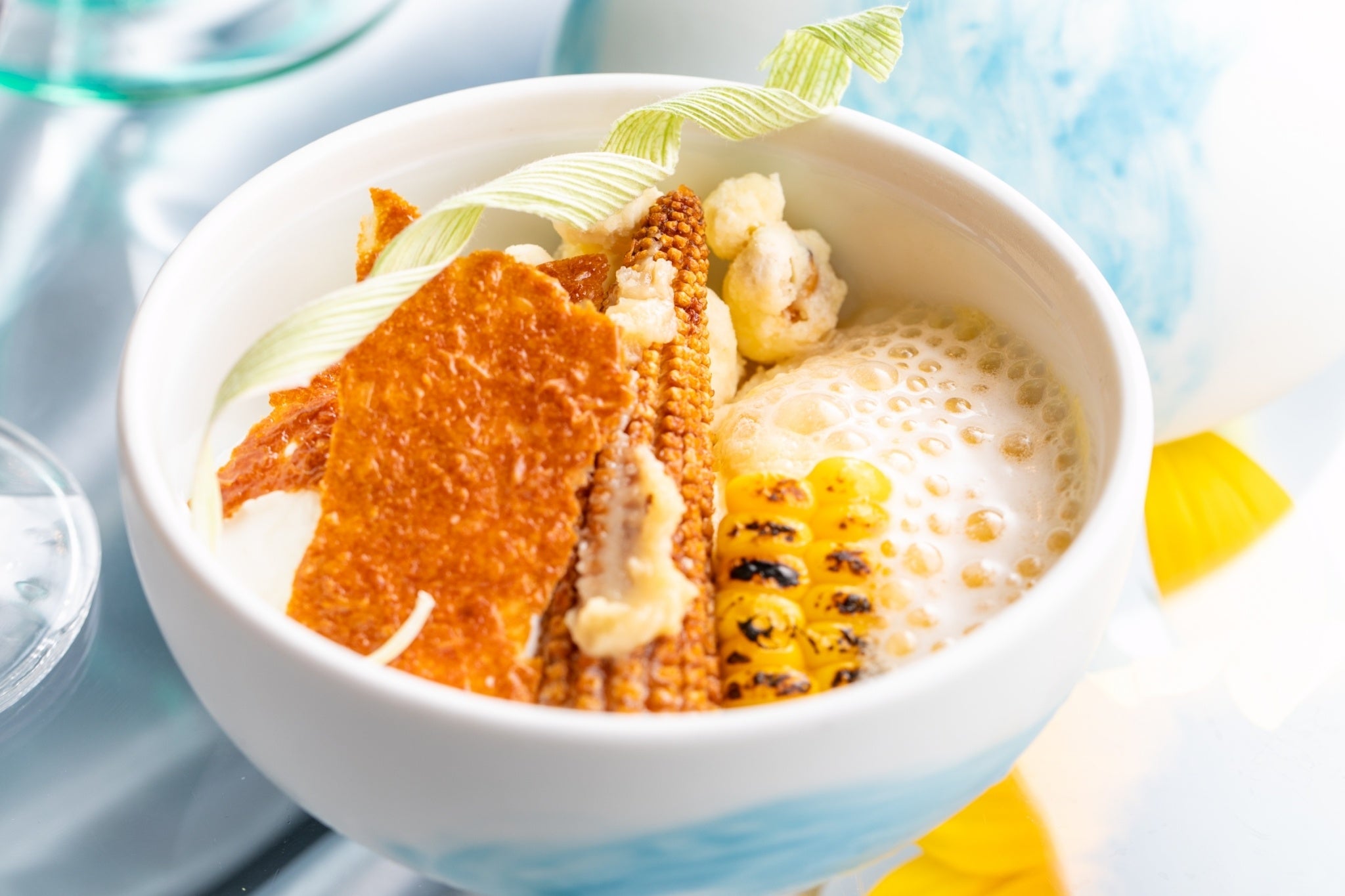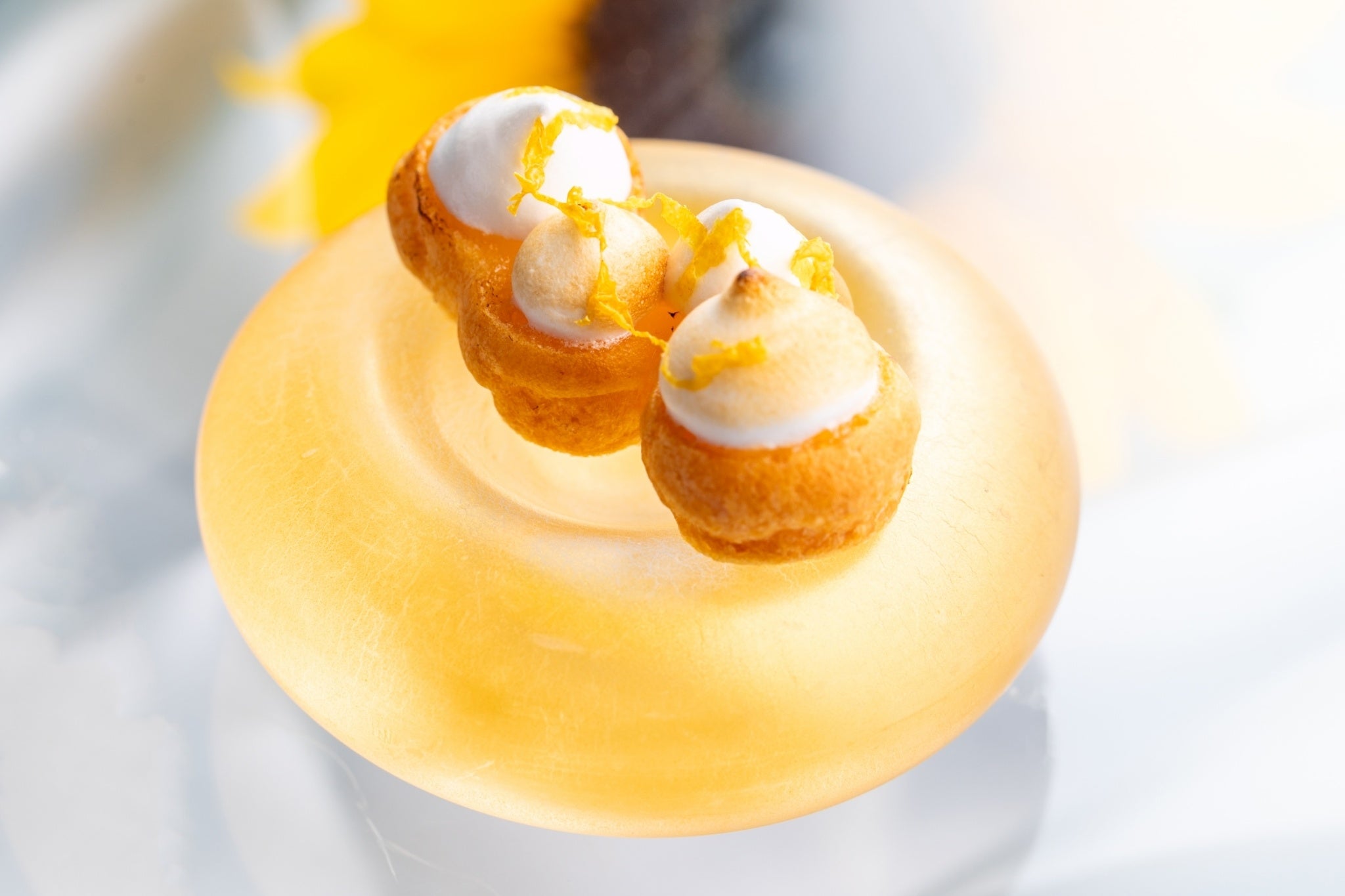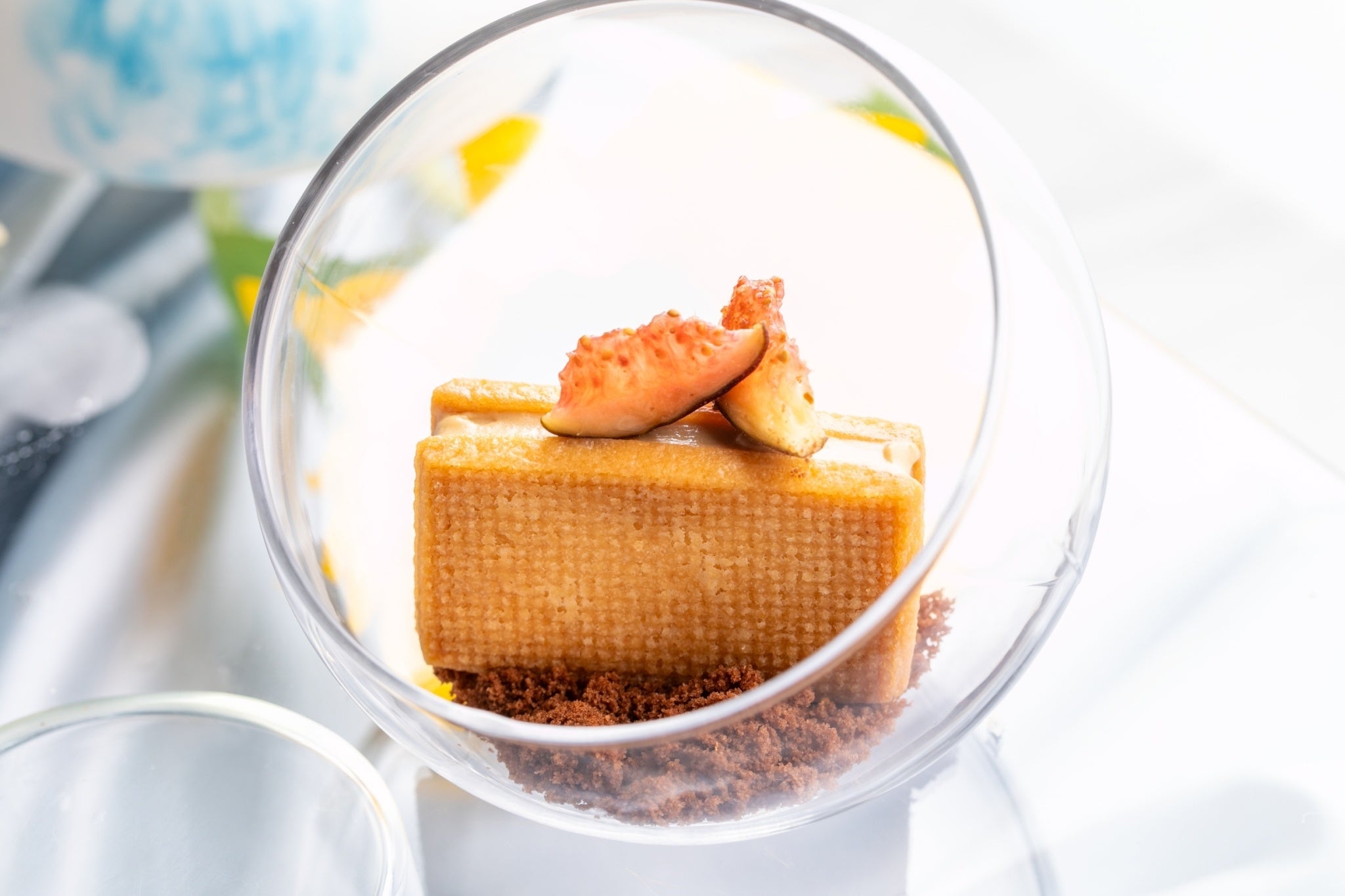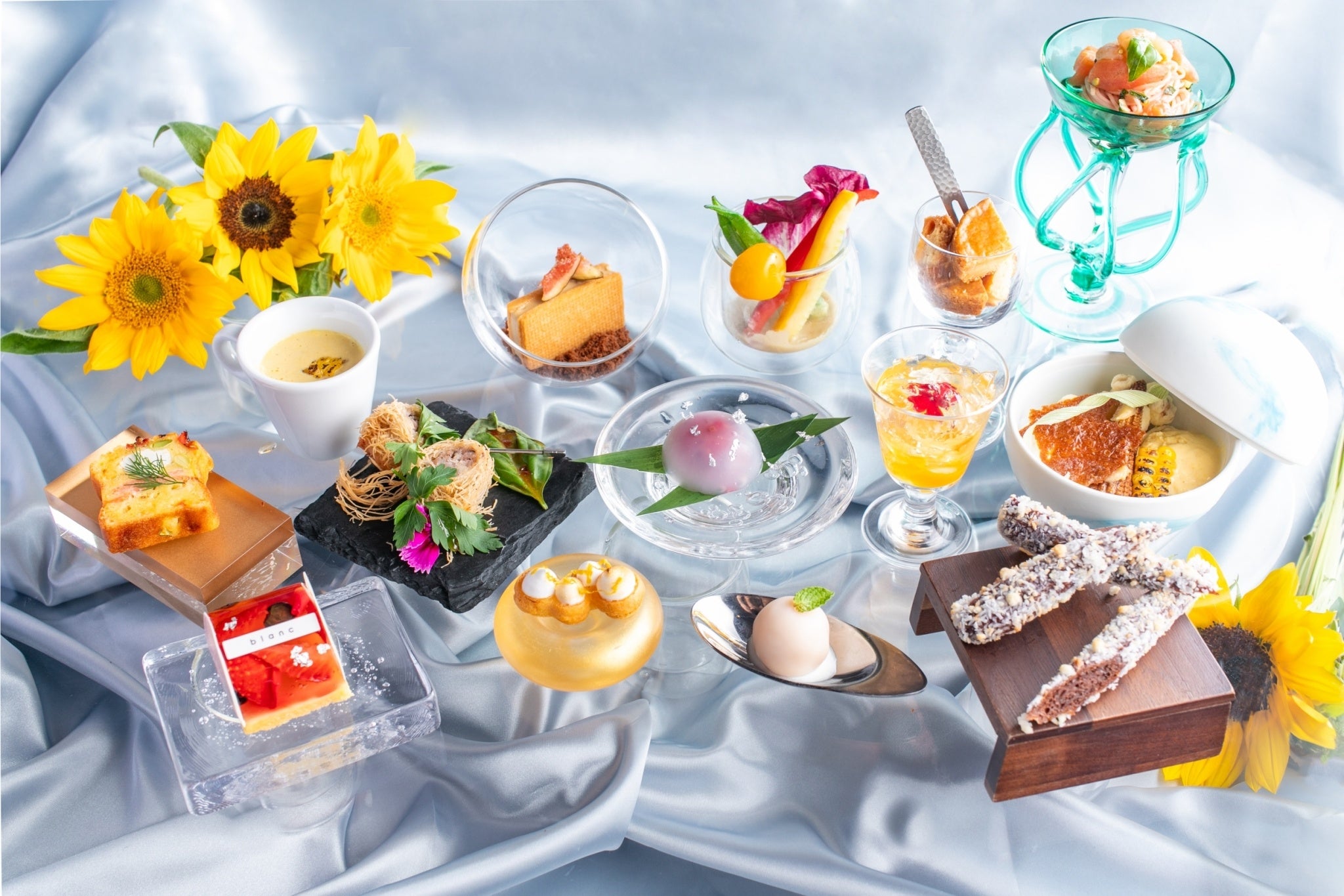 夏のフレッシュなフルーツをふんだんに使用した「マンゴーとパッションのシャンパンジュレ」や夏のイチヂクを用いた「黒イチヂクと黒糖のバターサンド」、とうもろこしの風味が際立つ「とうもろこしのパルフェ」など、季節感を存分に楽しめるメニューをご用意しております。