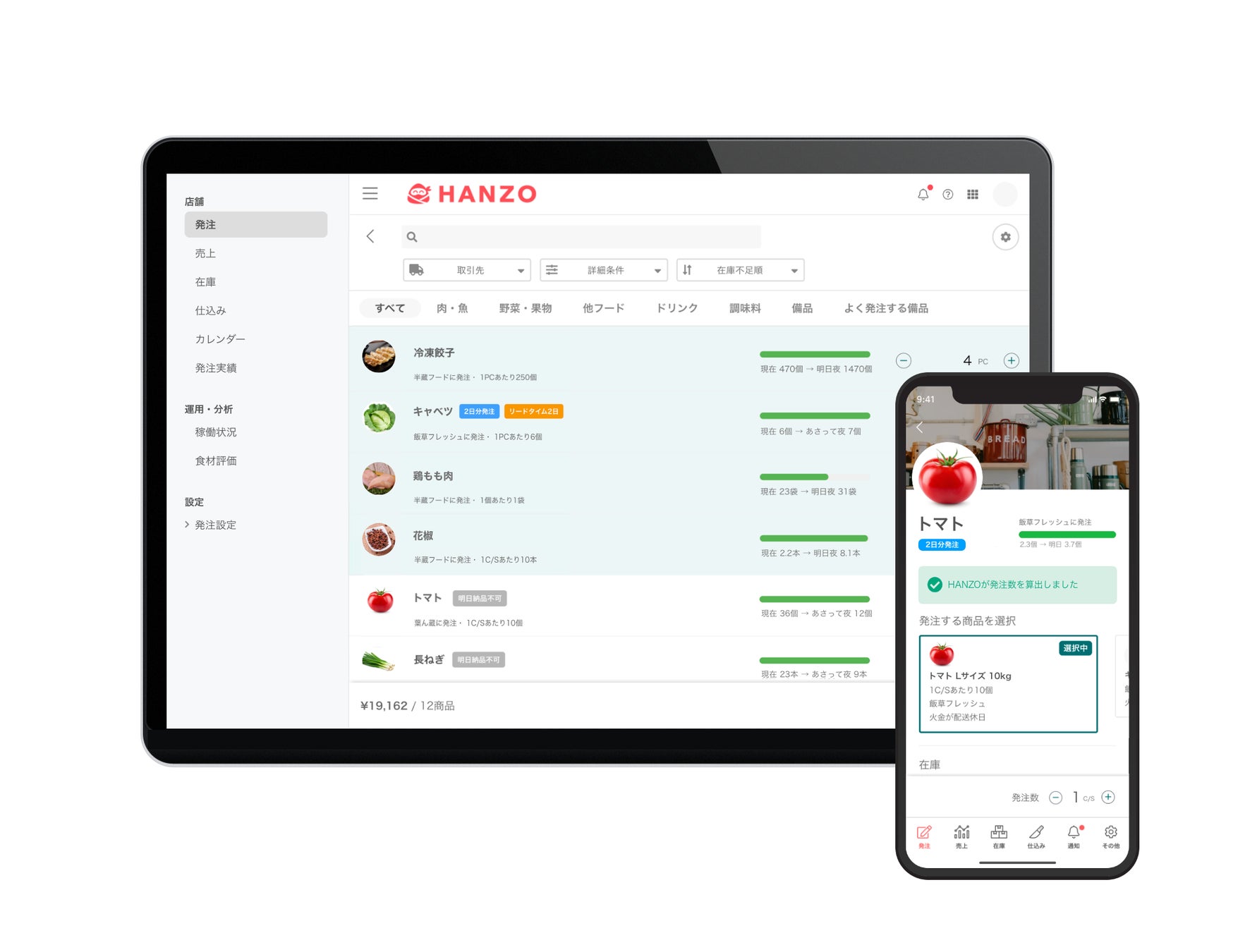 接客サービスの向上を目指すなかで課題となるのが、商品開発や販促活動、品質管理など店長が対応するべき業務の負荷の高さです。中でも発注業務は、紙をベースに在庫の確認・記入をしてから、発注システムに転記する必要があるため、資料の保管・店舗と事務所間の移動が必要な場合もあります。また、規模の小さい店舗で営業時間内に対応する場合、作業中は店舗の混雑状況の把握が難しく、接客をするスタッフの人数も減ってしまう状況が発生していました。「HANZO 自動発注」は接客に影響を出さずにスマートデバイスで発注作業を完了できるため、今回「麺家」「デリカフェ」の2業態に導入されました。