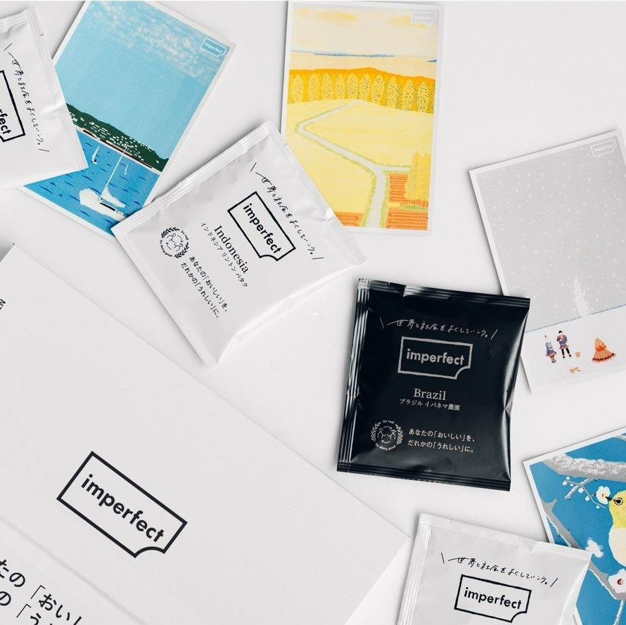 季節や気分に合わせて、様々な個性のコーヒー豆の中からお気に入りの味わいを楽しむ。imperfectでは父の日に合わせて、新たなコーヒーのおいしさに出会えるコーヒーギフトを 発売します。Thanks Coffee Gift(サンクスコーヒーギフト)は、人気の4種のシングルオリジンが楽しめるコーヒードリップバッグの詰め合わせセット。コーヒーローストマップ付きで、豆の個性を飲み比べながら体感できます。Four Seasons Coffee Gift(フォーシーズンズ コーヒーギフト)は、季節の移り変わりを楽しむコーヒーとポストカードが届く定期便。障害者アーティストの所得支援を目指すアートビリティとコラボした四季折々のポストカードは、遠方で暮らすご家族に季節のお便りとしてお贈りするにもぴったりです。