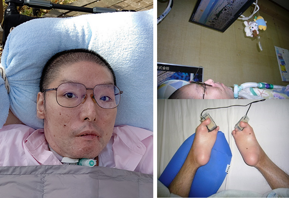 子どもの頃から絵を描くのが好きで、時間を見つけては落書き帳に絵を描いていた。病気は徐々に進行して20歳の時には鼻マスクの人工呼吸器を付け、42歳で気管切開して胃に直接栄養を送る胃瘻になり、ほぼ寝たきりの生活となる。
