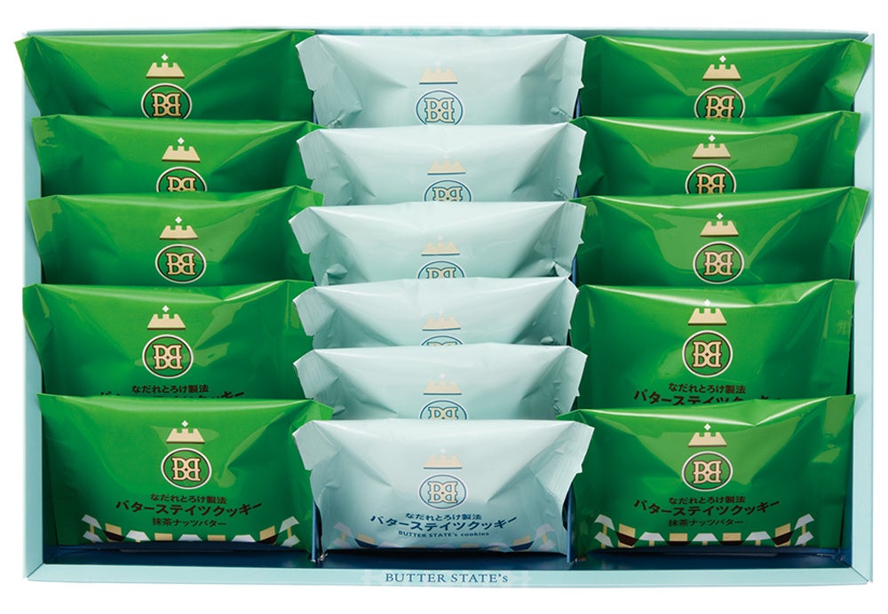 【内容品】16個入(なだれとろけ製法 バターステイツクッキー 6個、なだれとろけ製法 バターステイツクッキー 抹茶ナッツバター 10個)