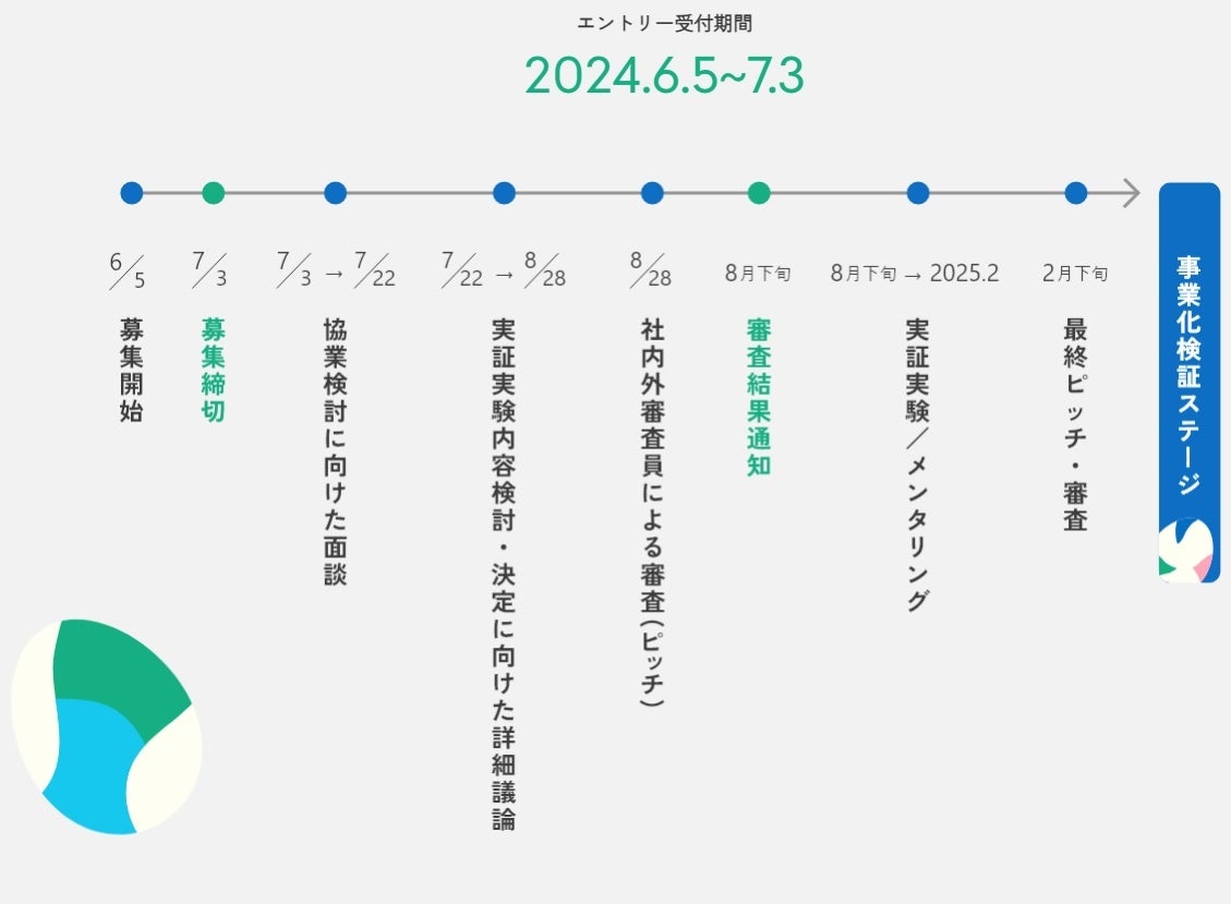当社は、2023年から社員が新たなビジネスアイデアを提案し、事業化を目指す新規ビジネスプラットフォーム「TAMAGO ACTION!」を展開しています。今回、検討を進めている事業案と、それに沿った社内の活用アセットを提示し、他社のアセットとのマッチングを図る取り組みを実施します。これにより、具体的かつ革新性のある価値提供の創出につなげるとともに、事業化に向けた実証検証を目指します。本プログラムにおける共同運営パートナーとして、株式会社ユニッジ(本社 東京、社長 土成実穂)と制度設計、事業伴走支援、提携パートナーの探索の支援、各種コンテンツ制作などを実施します。