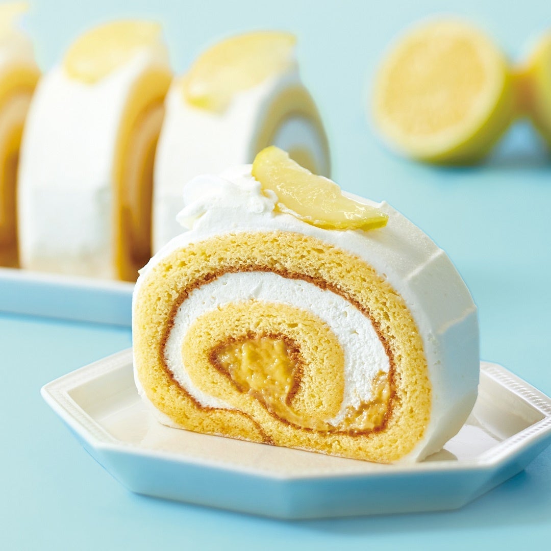 爽やかな酸味のレモンクリームと、まるでレモンをかじっているようなジューシーな味わいとストレートな酸味のレモンジャムクリームをレモンの酸味に負けないもっちり、しっとり仕上げたロール生地で巻きました。