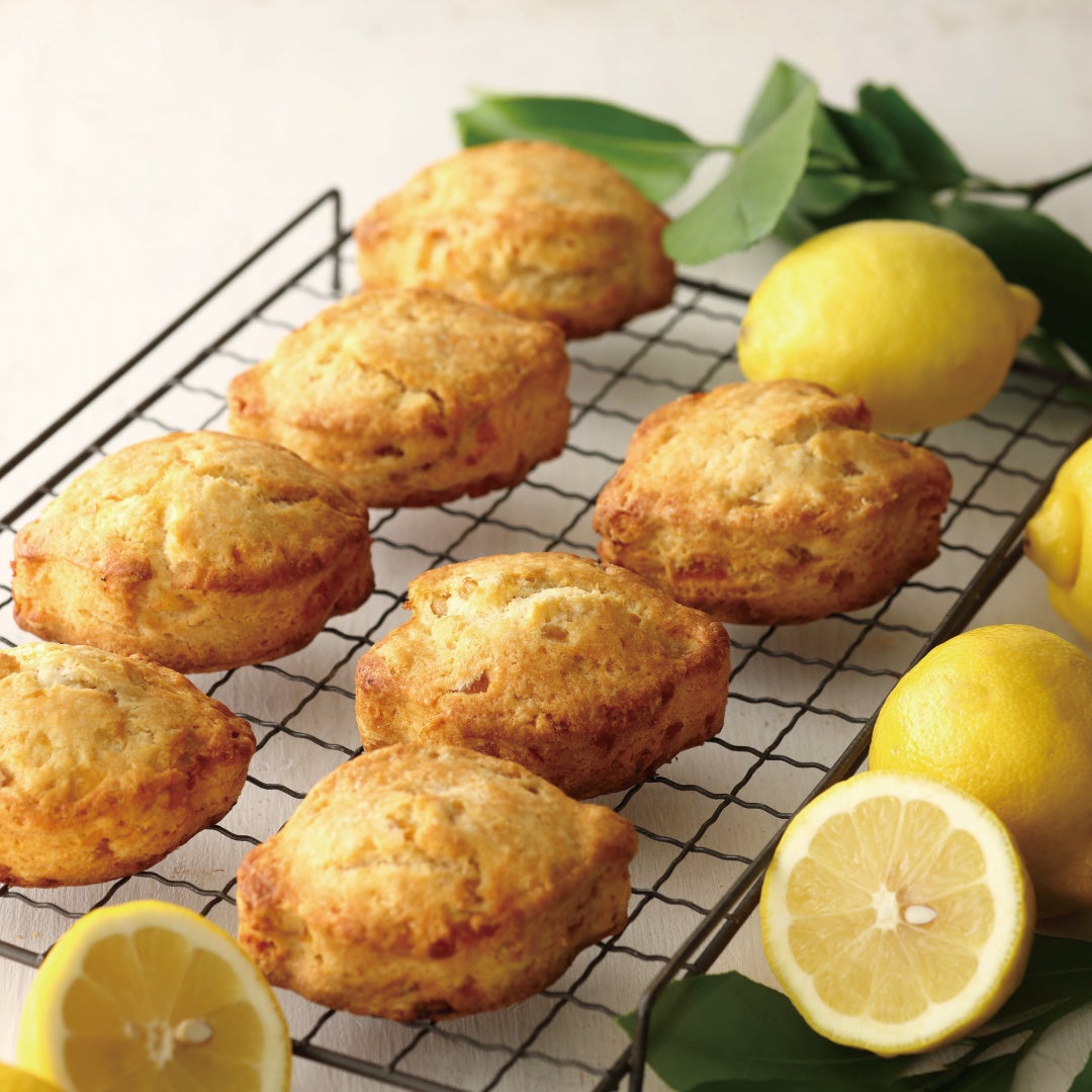 リモンチェッロに漬けたレモンピールの爽やかな風味と味わいが広がる軽い食感のスコーンです。