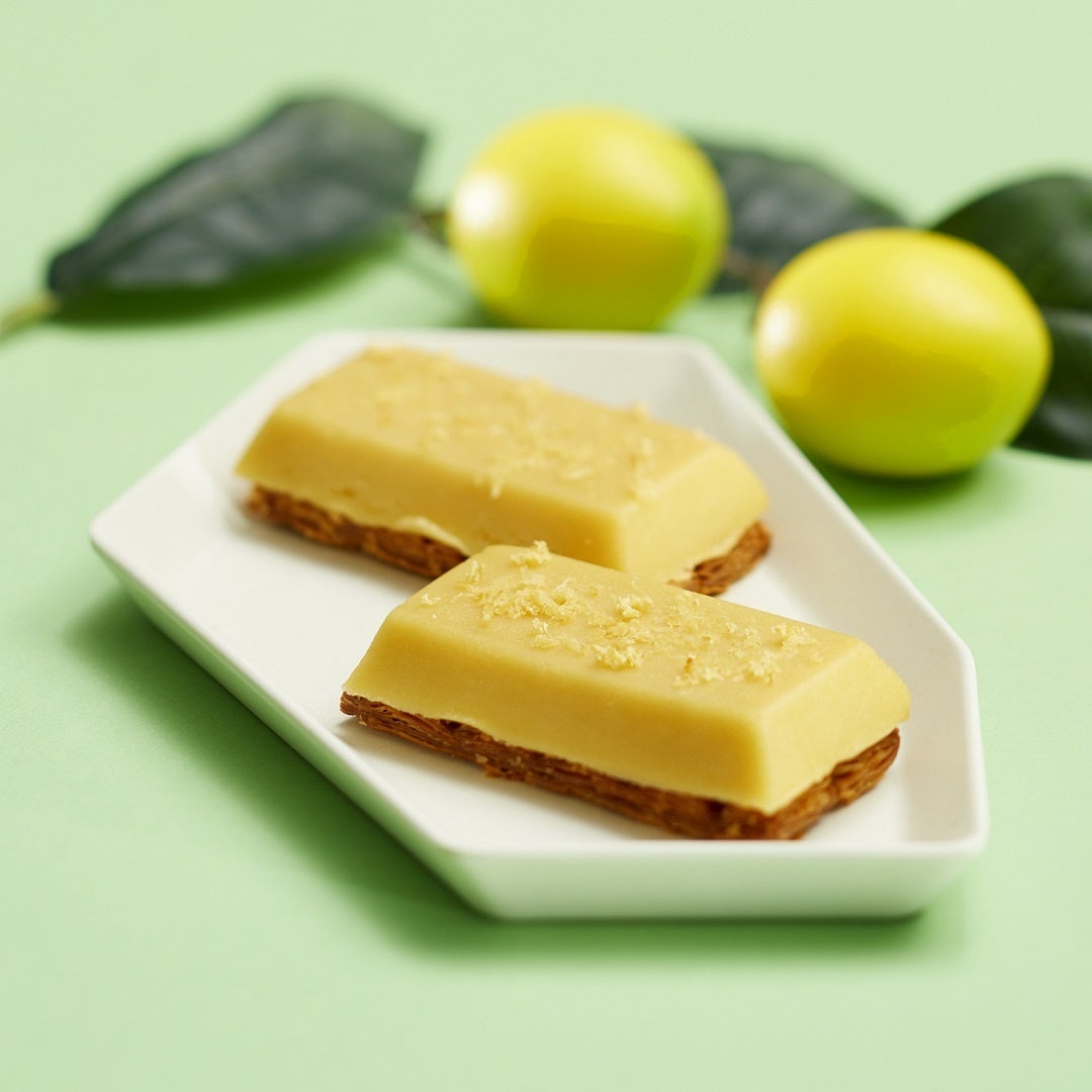 瀬戸内レモンのコンフィを混ぜ込んだフィナンシェ生地に、ヘーゼルナッツをトッピングしてしっとりと焼き上げました。香ばしいキャラメルに爽やかな瀬戸内レモンの風味を合わせた夏季限定商品です。