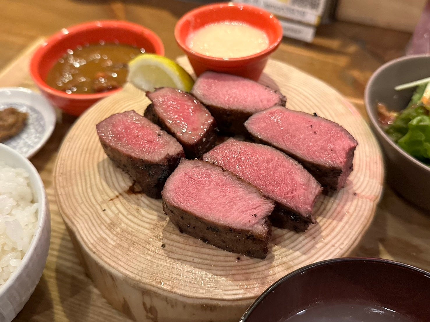 ※定食は、羽釜炊きご飯(大盛り無料)、牛たんスープ、牛たんカレー、牛たん肉味噌、とろろ、サラダ付きで、各付け合わせにもこだわっています。
