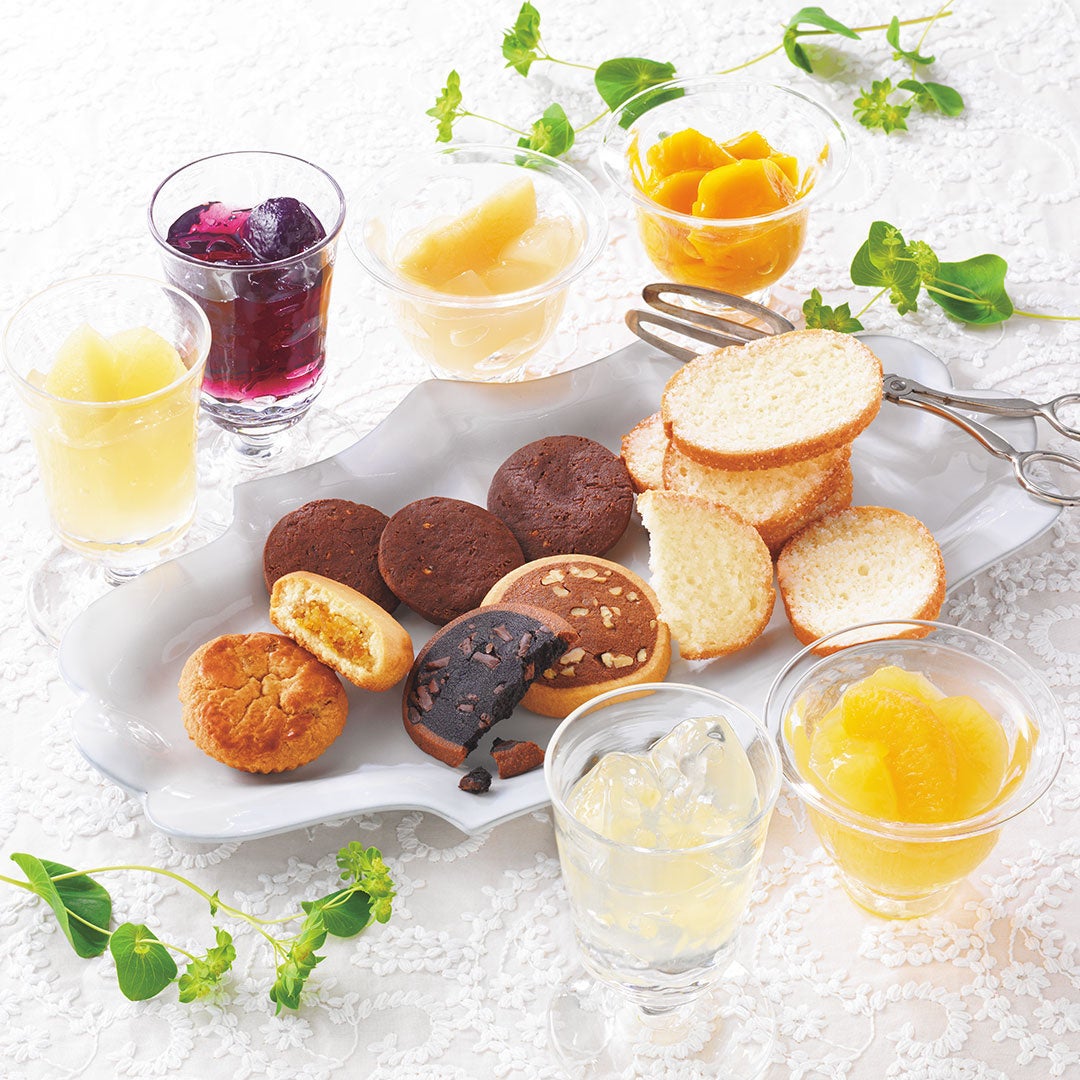みずみずしいフルーツのおいしさを閉じ込めた6種類のジュレと、クッキーズやラスク、焼きチョコレートなど、常温でお持ち歩きのできる人気の焼き菓子を詰め合わせました。夏の贈り物やご自宅用にもおすすめです。