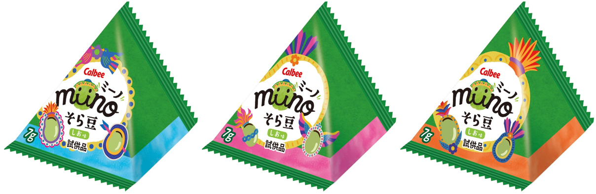 「チチカカ」コラボレーションパッケージの「miinoそら豆 しお味」を全国各地のイベントスペースでサンプリングします。ブルー、ピンク、オレンジのカラフルなデザイン3種を全国約8万人に配布予定。会場には「ミーノくん」の着ぐるみも登場! 7月13日(土)より配布開始予定で、詳細は「miinoさやえんどうチチカカコラボレーション特設サイト」で公開します。