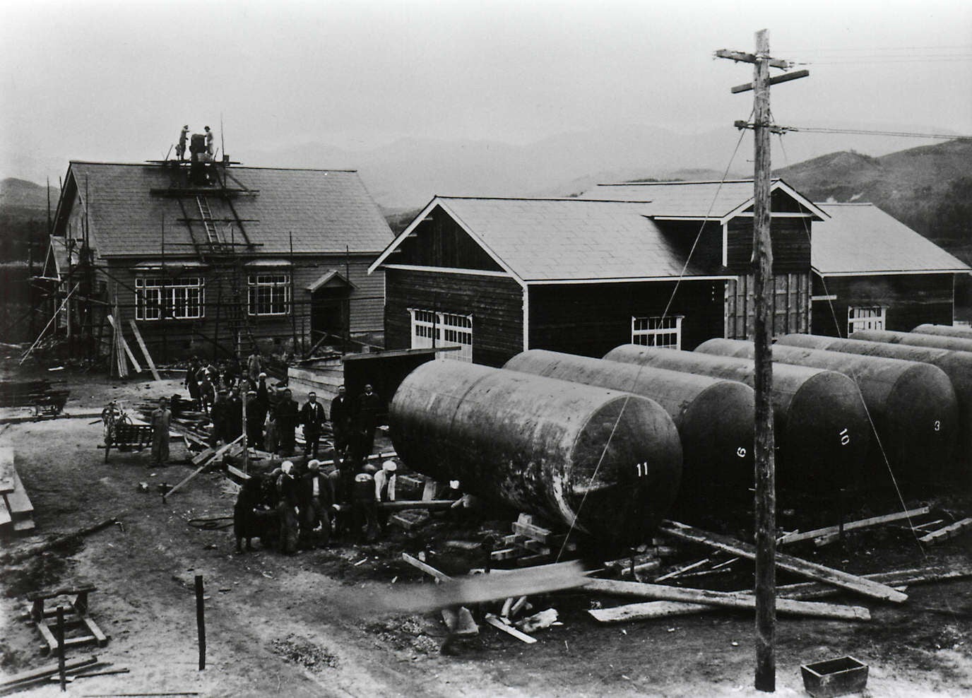 1920年に帰国した竹鶴は北海道余市で工場を建てることを決心し、1934年にニッカウヰスキーの前身となる大日本果汁株式会社を設立しました。ウイスキーが製品になるには長い年月がかかるため、設立当初はリンゴジュースなどの製造と販売に取り組みました。1936年からウイスキーの製造を開始し、1940年にモルトウイスキー「初号ニッカウヰスキー」が誕生しました。この商品が出荷されるまで経営は厳しい状況だったため、早く発売して経営を楽にしようという声もありましたが、竹鶴は辛抱強く熟成の時を待ち、香り高く重厚な味わいのウイスキーを完成させました。