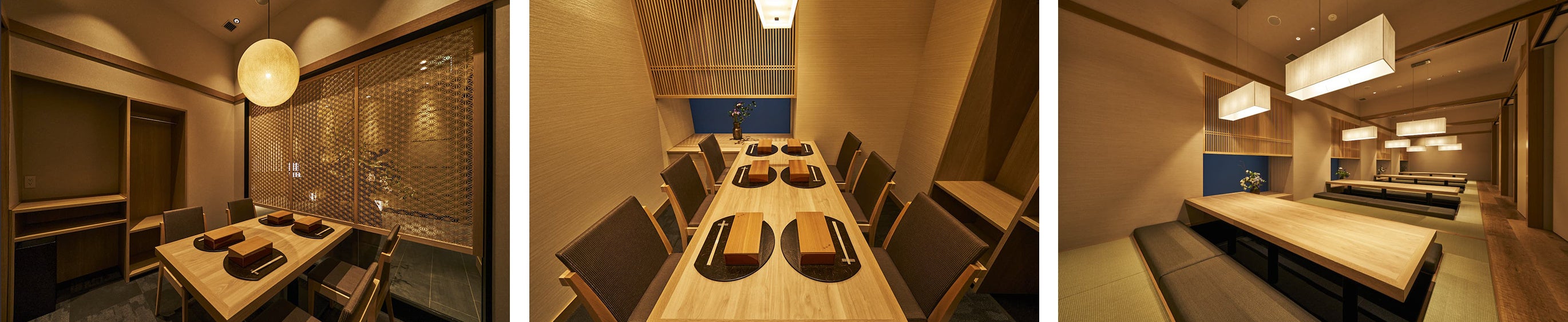お 席:全席完全個室、19室126席(掘り炬燵席、テーブル椅子席)。