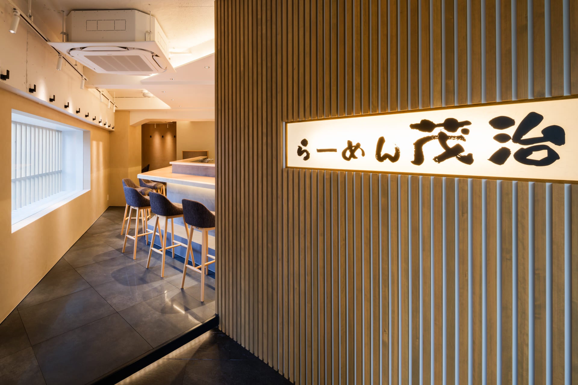 「らーめん 茂治」は、落ち着いた和の雰囲気が漂う内装で、心地よい空間をご提供いたします。