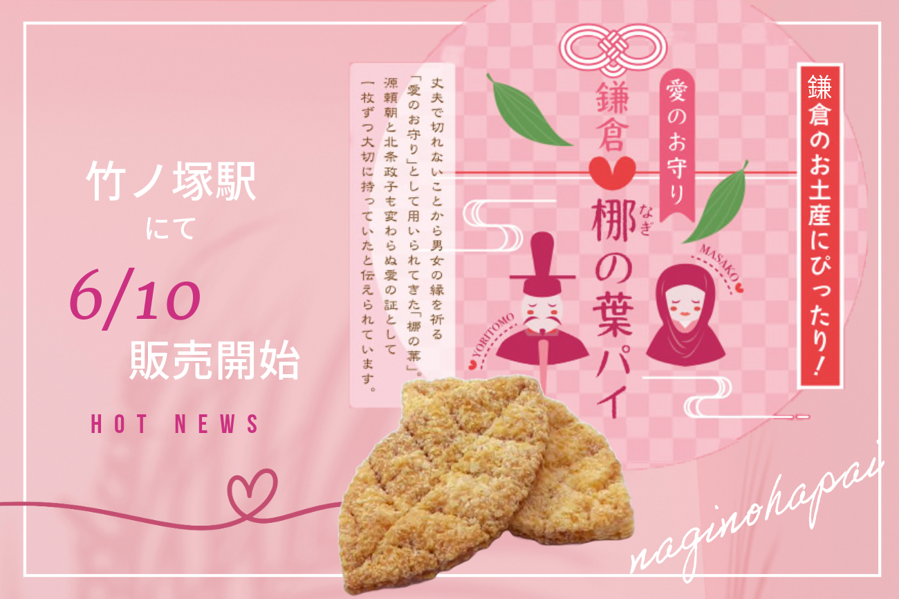 鎌倉のお土産としてもオススメなこの「梛の葉パイ」が竹ノ塚駅にて販売開始が決定!