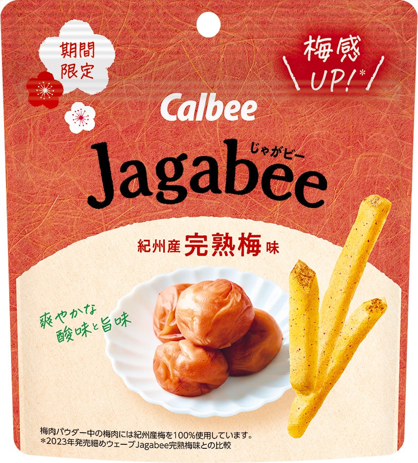 ●2023年に発売した「細めウェーブJagabee 完熟梅味」と比較し、より梅感をアップさせた暑い季節にもぴったりのおいしさに仕上げました。