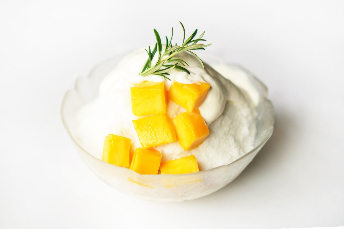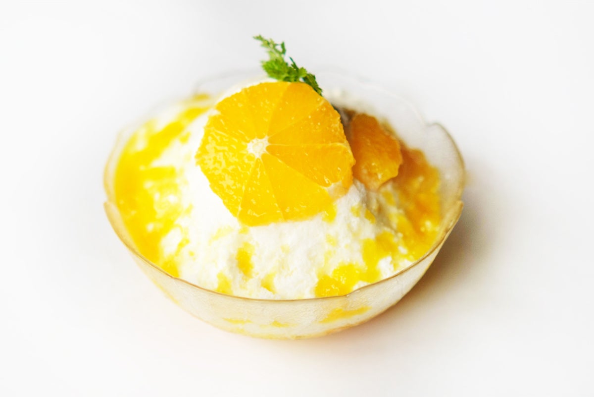 産直フルーツをふんだんに用いたかき氷。ヨーグルトのやわらかな風味がフルーツの味を引き立て、かき氷の底にあるグラノーラの食感も楽しむことができます。マンゴー・夏小夏・メロンの三種類を提供。夏のフルーツを贅沢に味わうことができる豪華な夏のスイーツです。