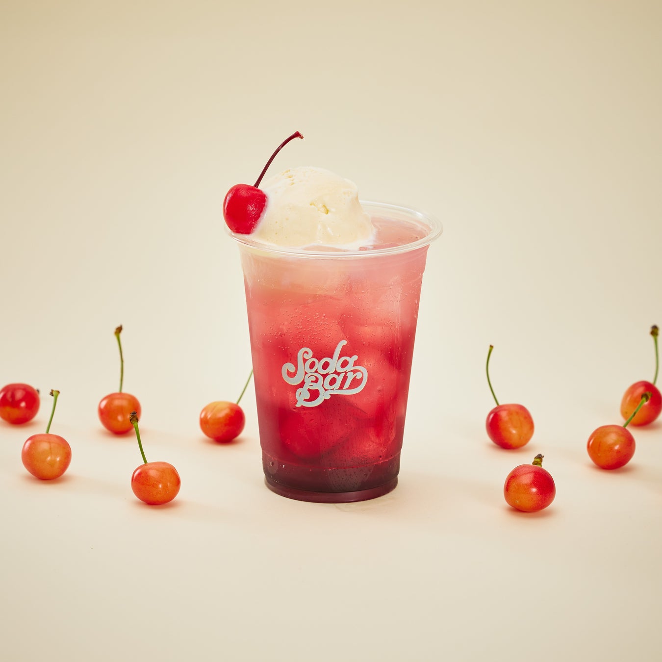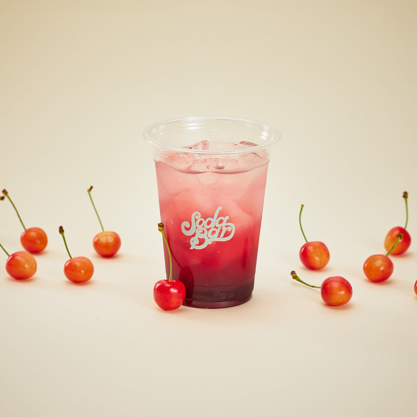 アメリカンチェリーそのままの味が楽しめる贅沢ソーダになっ ています。
