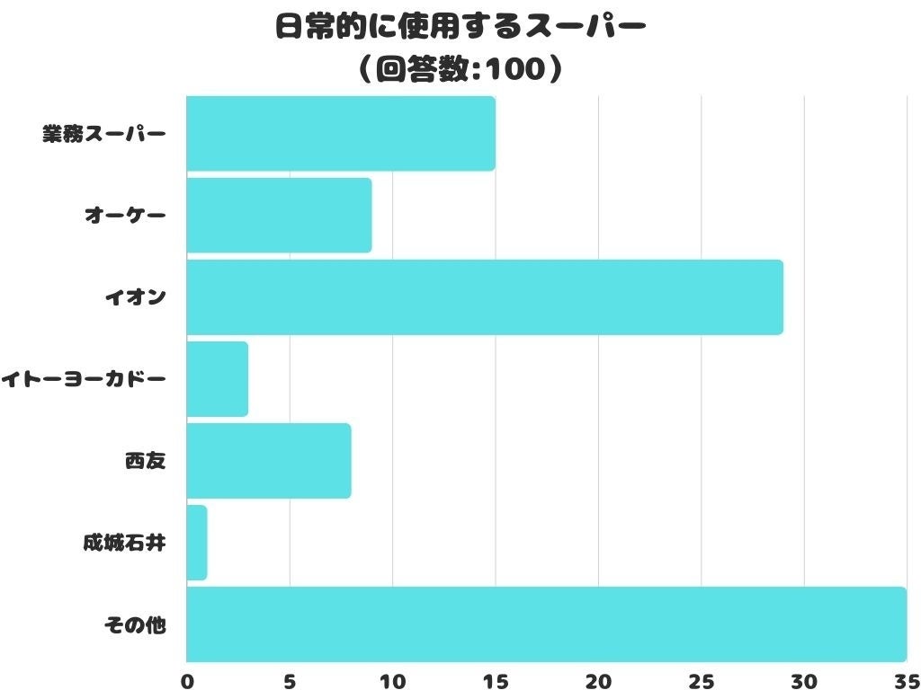 日常的に使用するスーパーをアンケートにて調査したところ、1位は「イオン」でした。