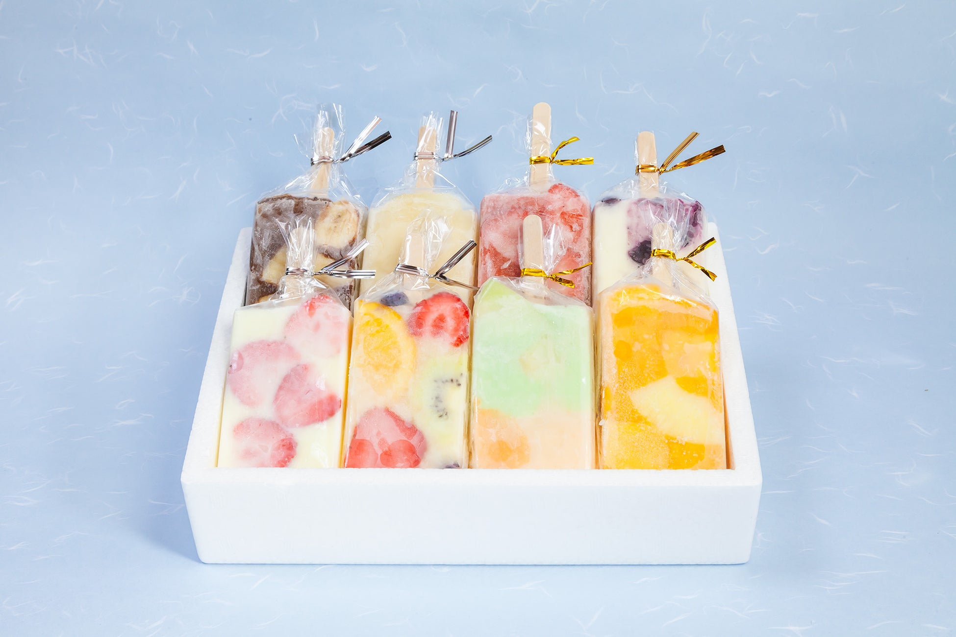 大人気のいちごミルク、フルーツミックス、ストロベリーをはじめ、男鹿梨や若見メロン、にかほ市のいちじくなど秋田の素材を使ったアイスのセットです。約30種類あるフローズンキャンディから、特に人気の8本をセットにしました。どのフレーバーが入っているかは届いてからのお楽しみ。様々な味が楽しめるので、手が止まらなくなること間違いなしです。