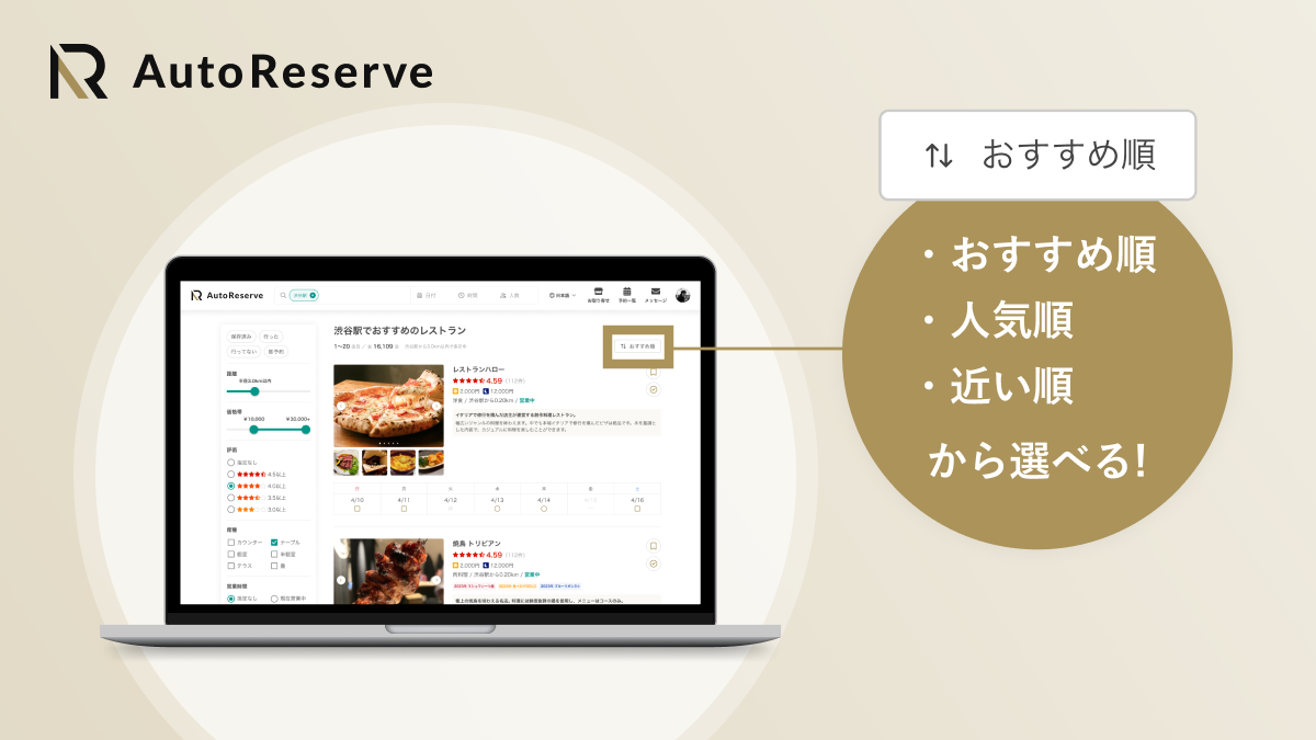 これまでは検索結果を一律で表示してきましたが、利用者からのリクエストもあった「おすすめ」「人気順」「近い順」での並び替え(ソート)が可能になりました。