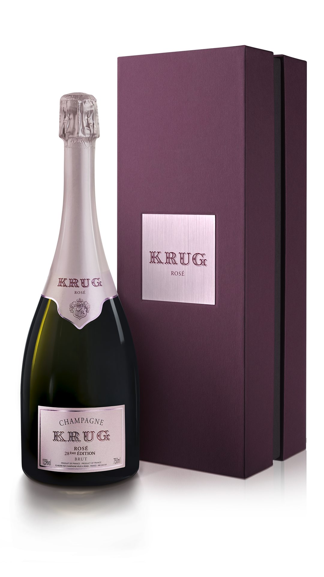 クリュッグ ロゼ 28 エディションは、6つの異なる年の32のベースワインをブレンドしたもので、最も若いものは2016年、最も古いものは2010年までさかのぼります。アイとマレイユ・シュール・アイにある区画から伝統的な果皮浸漬によって抽出したピノノワールを10%ブレンドすることで、独特のスパイシーさ、色、ストラクチャーを加えています。最終的な品種構成は、ピノノワール58%、伝統的浸漬法によるピノノワール10%、シャルドネ25%、ムニエ17%。2016年のベースワインに、他の5年分のリザーヴワインがブレンドされました。最終ブレンドに占めるリザーヴワインの割合は38%。クリュッグのセラーで約7年間熟成させることで、クリュッグ ロゼ 28 エディションに独特の表情とエレガンスが生まれています。
