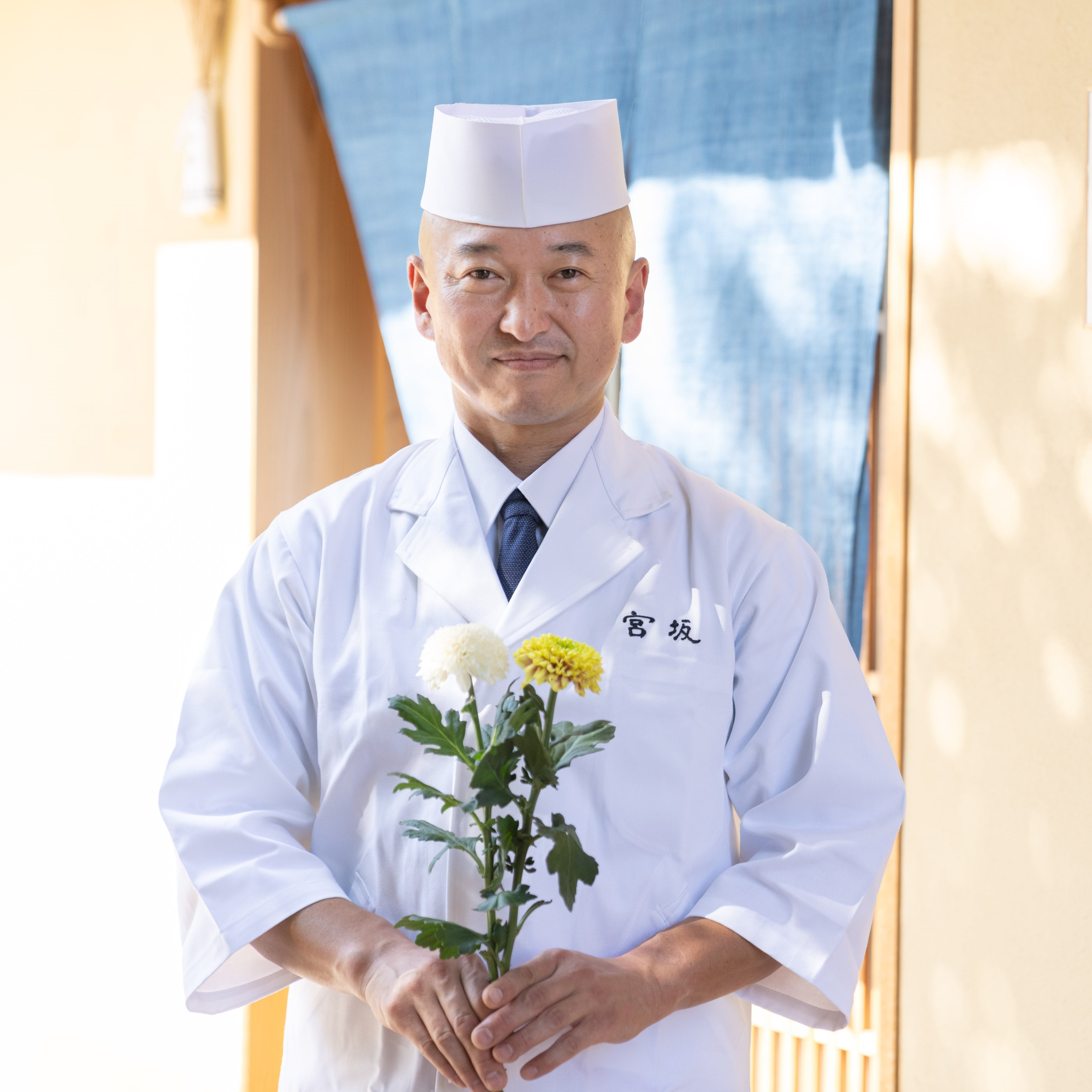 東京都内の和食店で11年、京都の名店にて10年にわたり研鑽を積む。2015年、東京・南青山に「御料理 宮坂」を開店し、初年度から5年連続ミシュラン2つ星を獲得。2021年、新たな屋号「宮坂」で店を移転し開業。