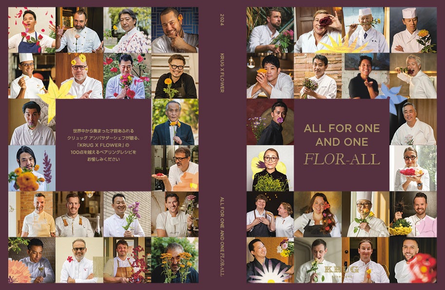 クリュッグ アンバサダーシェフ100人以上のレシピが掲載されたレシピブック『ALL FOR ONE AND ONE FLOR-ALL』。レシピはウェブサイトでもご覧いただけます。ぜひシェフのおすすめするペアリングレシピをご自宅でもお試しください。