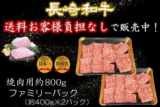 キャンペーンでは、数量限定で「長崎和牛 焼肉用(約400g)」を¥4,000(税込)、「長崎和牛 焼肉用(約800g)」を¥7,980(税込)など特別価格で販売しています。併せて、長崎和牛の一部商品について、送料お客様負担なしで販売しています。