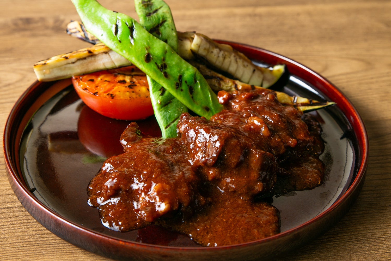 当店名物の牛タンシチューです。グリル野菜と相性バッチリです。