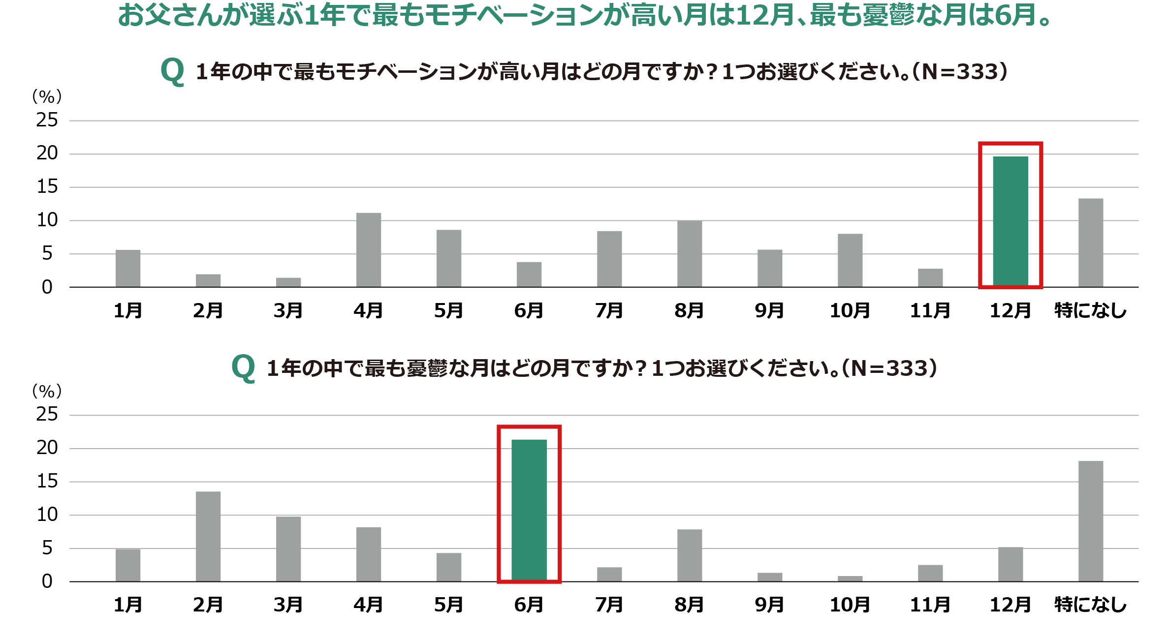 お父さんが選ぶ1年で最もモチベーションが高い月は12月、最も憂鬱な月は6月。