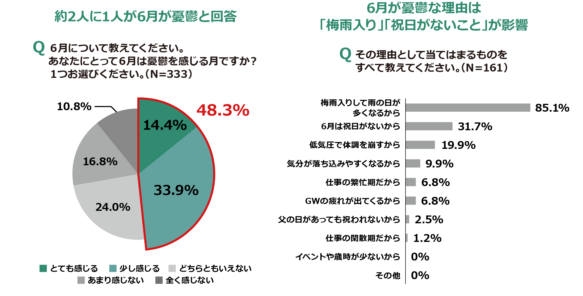 約2人に1人が6月が憂鬱と回答。理由は「雨の日が多い」「祝日がない」