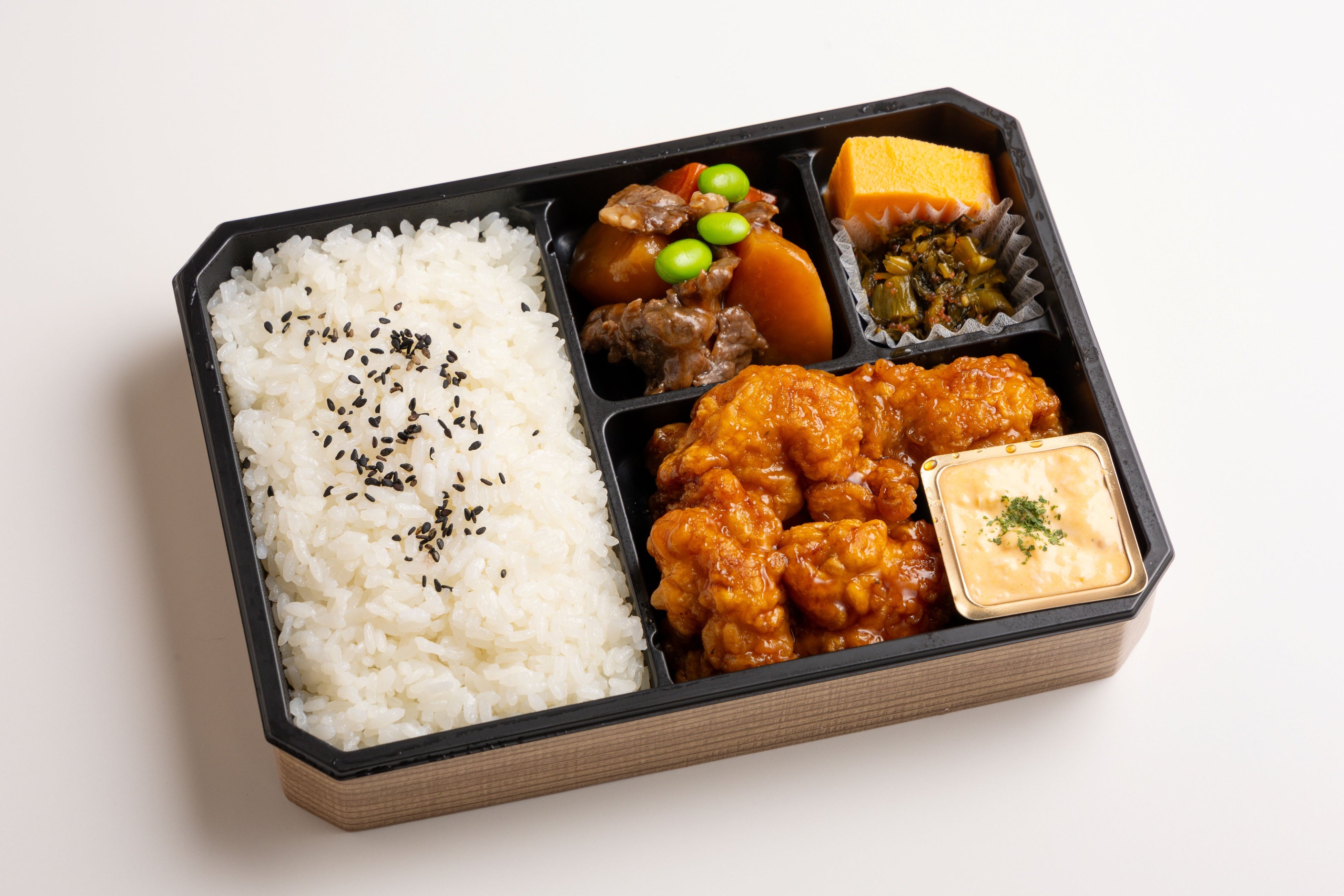 塚田農場の人気メニューをお弁当仕様にアレンジした人気No.1。ご飯が進む甘酢の味付けと、オリジナル卵をたっぷり使用したタルタルソースのチキン南蛮をメインに、肉じゃが、高菜明太、玉子焼きも主役級のおいしさ。