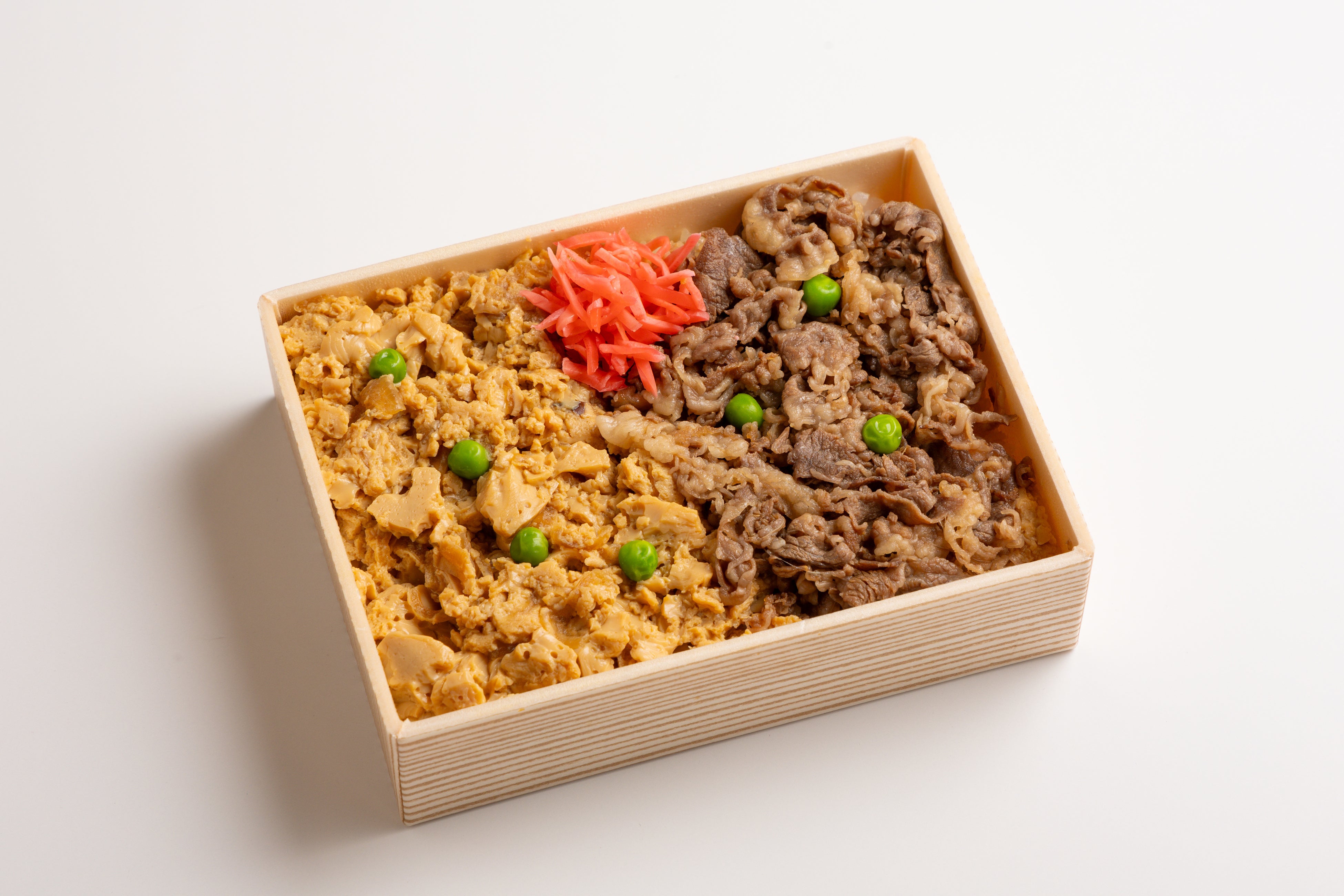 肉の旨みが凝縮したタレでふんわりと仕上げた玉子と玉ねぎを、秘伝の割り下で煮上げた黒毛和牛とともにご飯の上に盛り付けました。旨味たっぷりの牛肉と玉子の優しい味わいが幅広い年齢層の方に人気のお弁当です。