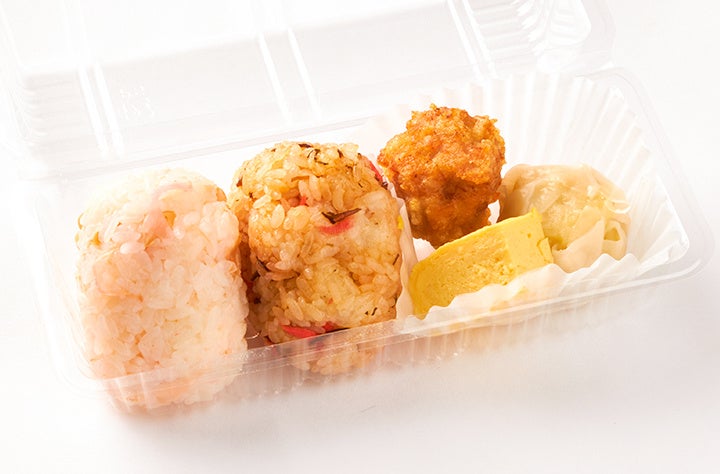 おにぎりは冷めても美味しい山形産ひとめぼれを使用し、一つ一つ優しく手握り。具材は、20種類以上から選べます。 おかずは特製ダレに漬けた唐揚げに、だし巻き玉子、焼売の3種類。 「シンプルだからこそ、毎日でも食べられる。」 そんなおにぎり弁当です。