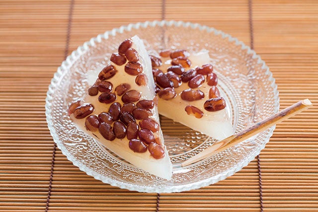 た氷で暑気払いする都人に倣い、庶民は氷を模した三角形の外郎に「魔を滅めっする」小豆(まめ)をあしらった 水無月を食べることにより、暑い夏を乗り切ったといわれています。