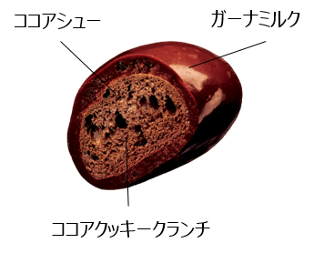 ほろ苦いココアシューとココアクッキークランチをガーナミルクで包み込みました。