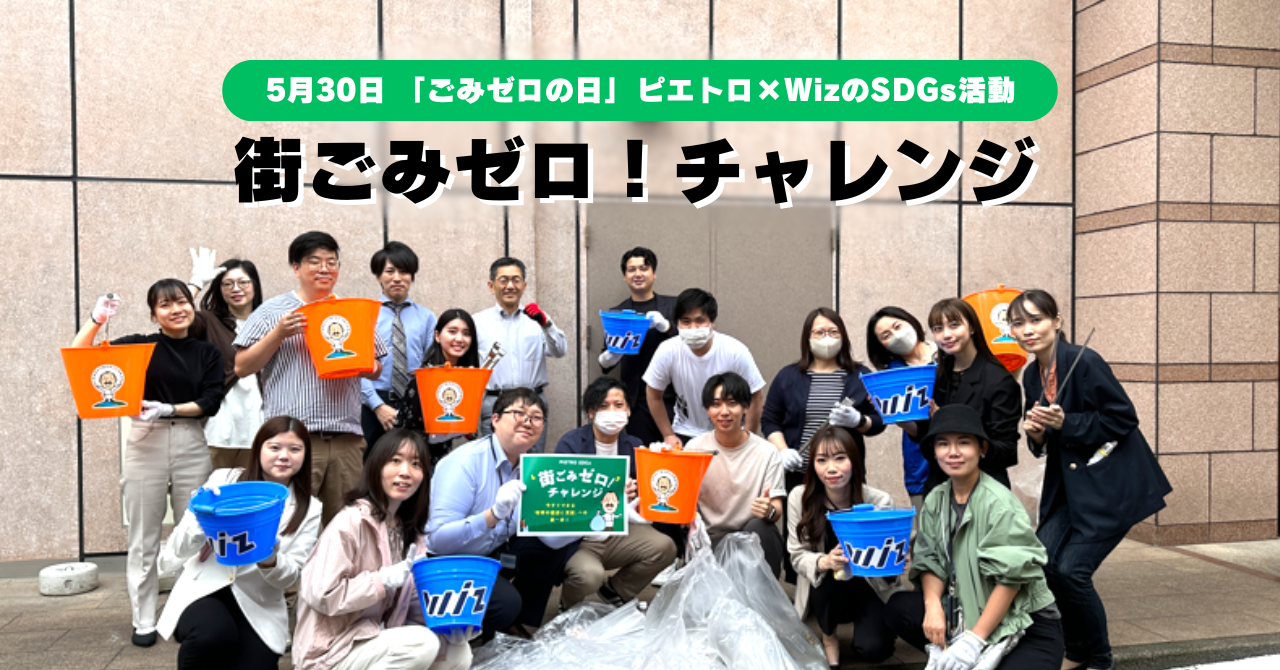 「街ごみゼロ!チャレンジ」とは、毎年5月30日から始まる環境デー「ごみ減量化推進週間」にちなんで始まった、ピエトロとWizによるコラボ地域清掃プロジェクトです。協働活動によって、地域社会の美化や環境保全などのSDGsに関する意識をより高めていきたいという目的のもと、福岡市天神に本社ビル「ピエトロビル」を構えるピエトロと、当ビルのテナント企業であるWiz・福岡支社が力を合わせ、福岡市天神周辺を清掃しました。