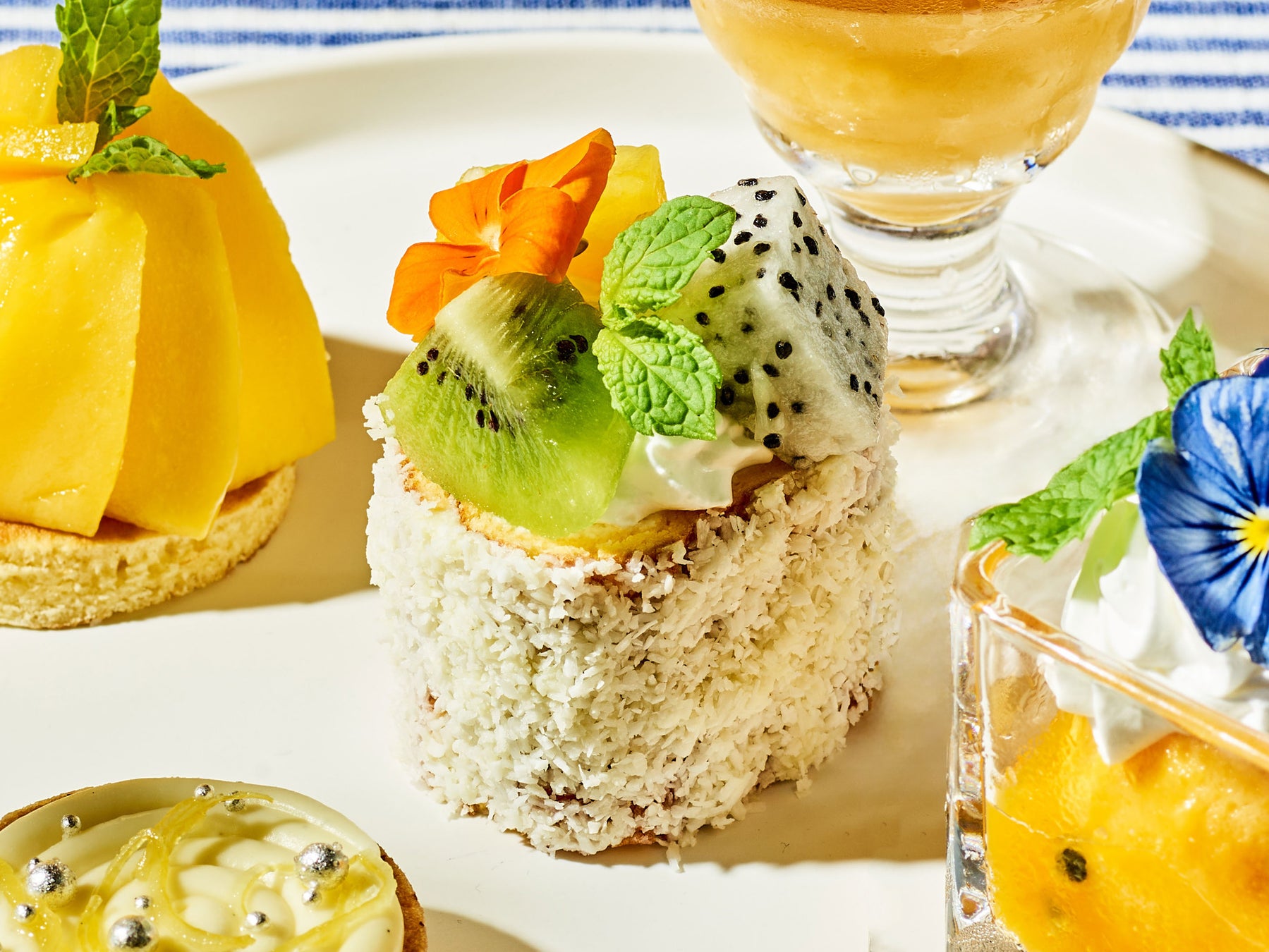 「Tropical Afternoon Tea」では、夏の陽気を感じながらお楽しみいただけるトロピカルな風味と贅沢な素材を取り入れています。スイーツの中でも特に、マンゴーパッションパフェは、一口食べるごとに南国の風を感じられ、ナポリ名物のババにはパッションフルーツを組み合わせ、甘酸っぱい風味とトロピカルな味わいが夏の暑さを忘れさせてくれます。