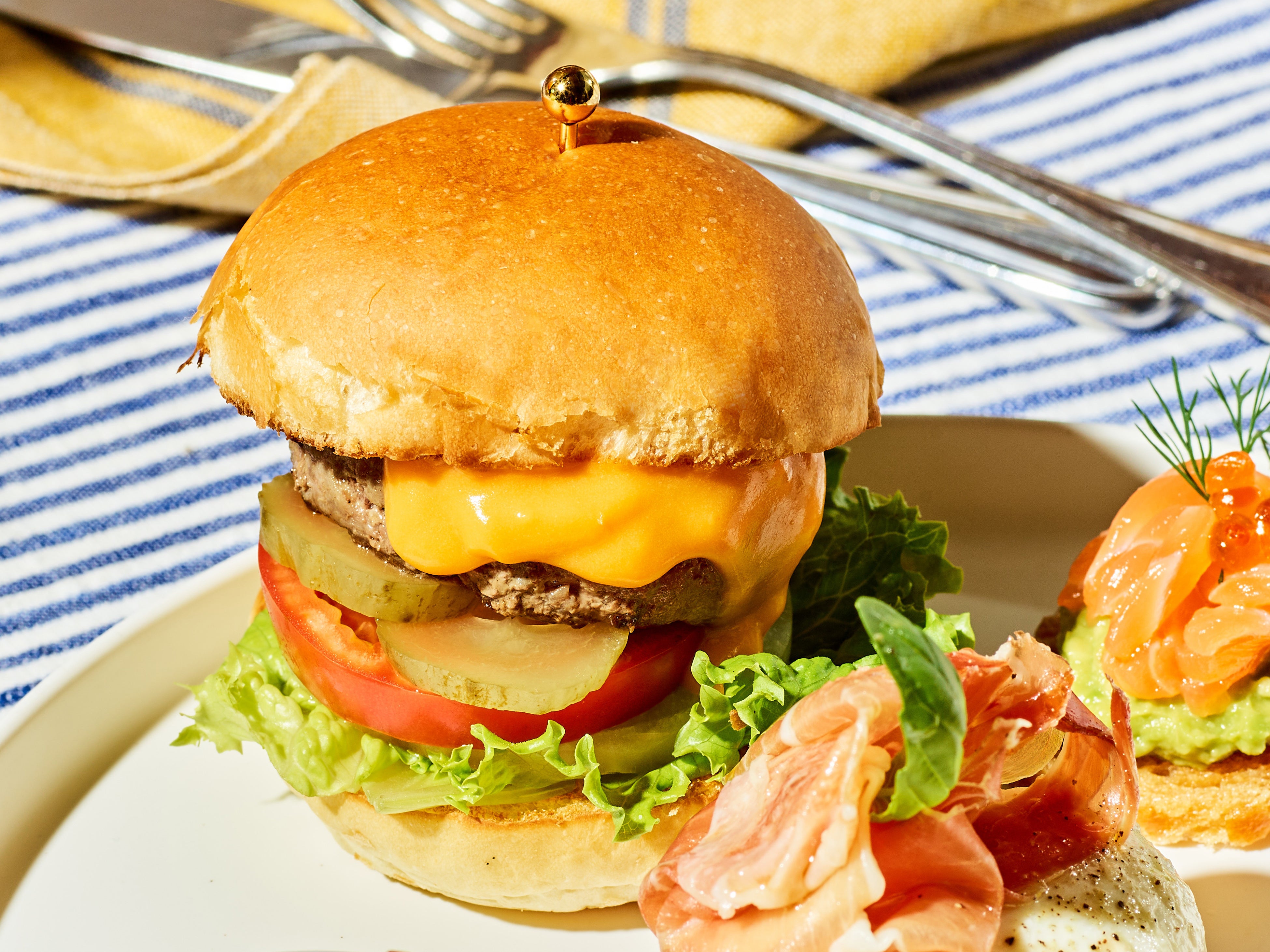 ランチメニューで人気のチーズバーガーがミニサイズで登場。つなぎは使わず、100%プライムビーフのみのパティは肉肉しく、絶品です。