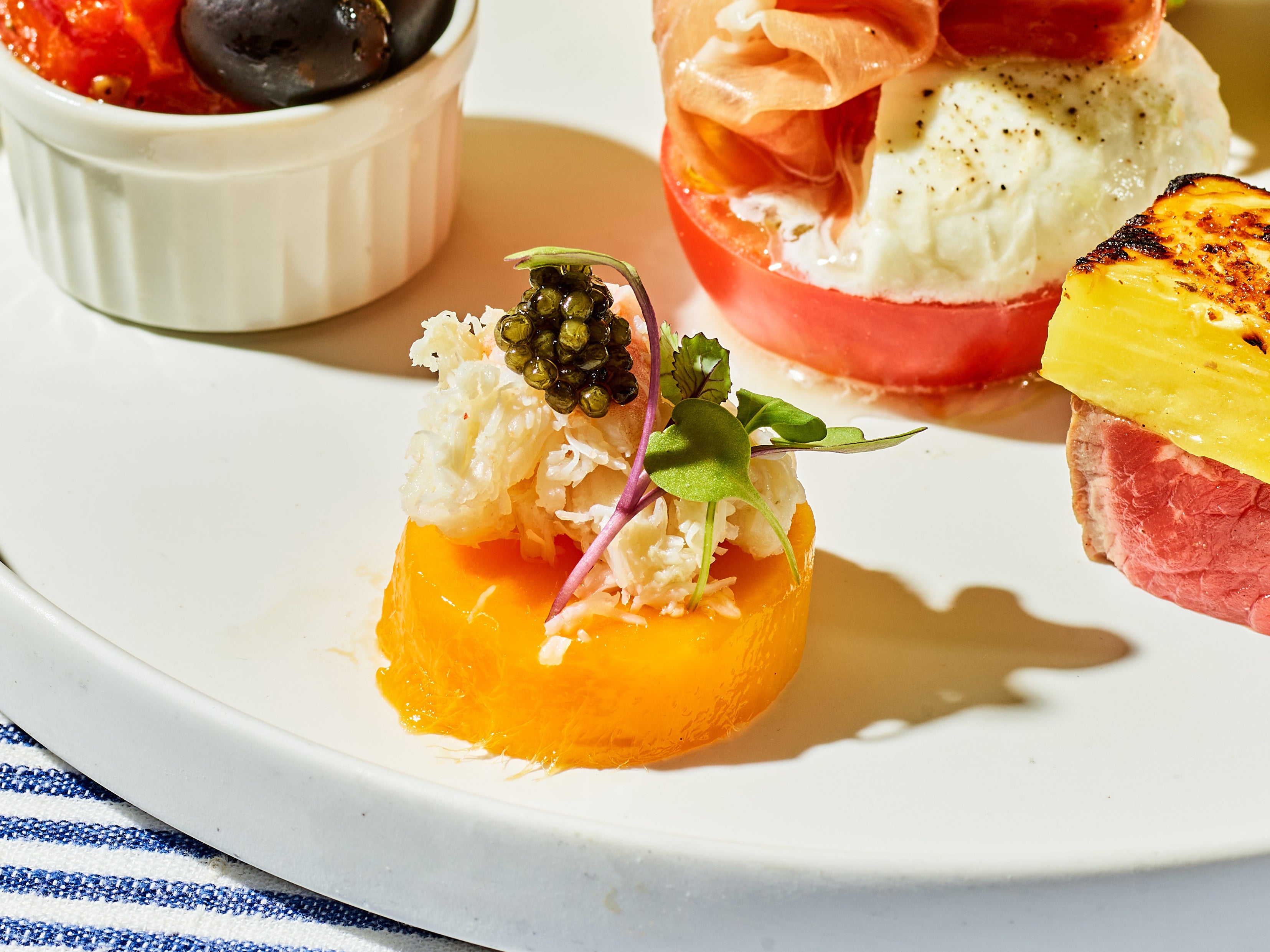 セイボリーには、特製のUSDAプライムビーフのミニバーガーや、フレッシュなイタリア直送モッツァレラを使ったカプレーゼなど、多彩なラインナップを取り揃えました。マンゴーとズワイガニのキャビア添えは、IL LUPINO PRIMEならではの贅沢な食材の組み合わせで特別なひとときを演出します。
