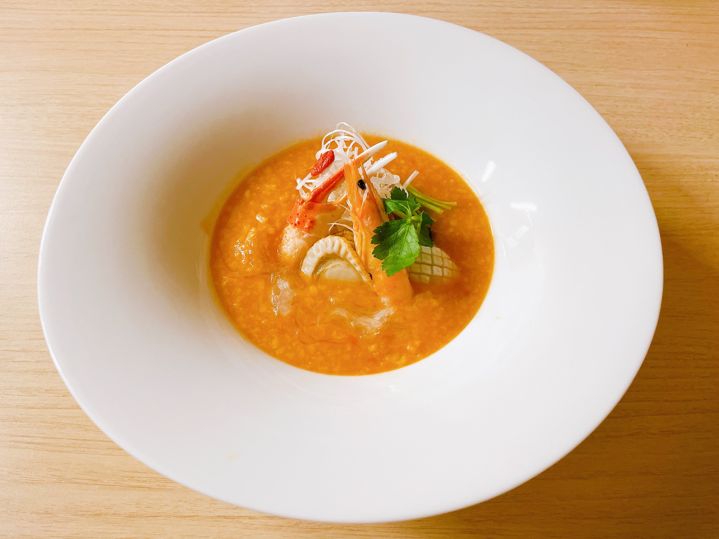 ◇「海老トマトかゆ」 1,400円(税込) :店舗人気No.3メニュー