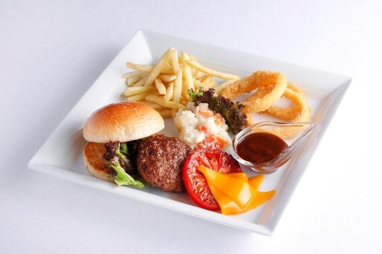 店舗が子供服売場に隣接しており、より一層ご家族連れのお客様にご満足いただくため、お子様ランチに加え、新たにハンバーガープレートを用意しました。メインのハンバーガーに加え、ポテトサラダ、ポテトフライ、オニオンリングを贅沢に盛り付けた食べ応えのあるプレートです。食後にはお子さまサイズのストロベリーサンデーをご用意します。