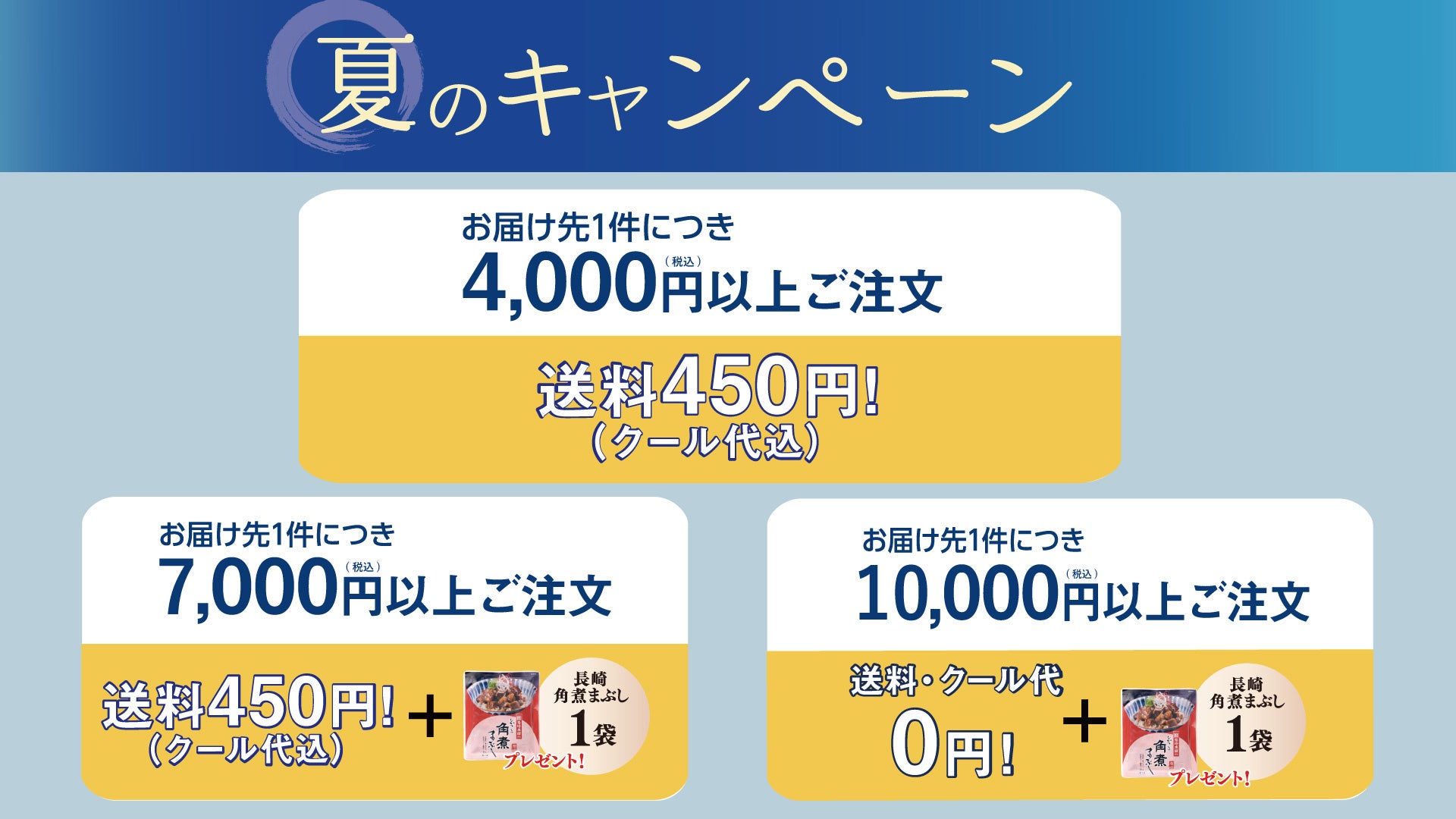 一か所7,000円以上のご注文でキャンペーン送料450円+角煮まぶし1袋プレゼント
