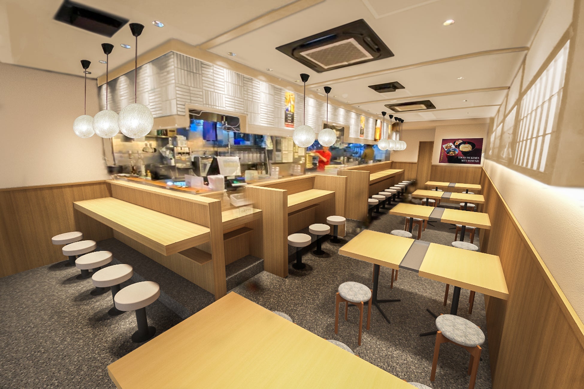 開放感・高級感ある白木造りの内装は、全てのお客様に素敵な「つけ麺ライフ」を楽しんでいただけるようにデザインし、ランチタイム・ディナータイム・飲んだ後の〆のつけ麺、どのようなシーンでもご満足していただける、明るい空間造りを心掛けております。