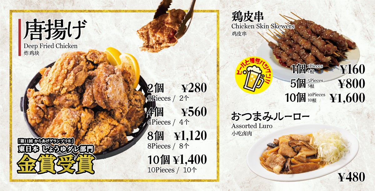 衣はサクッと、お肉は柔らかく。こだわり溢れる鶏唐揚げ。つけ麺やお酒の共にぴったり。