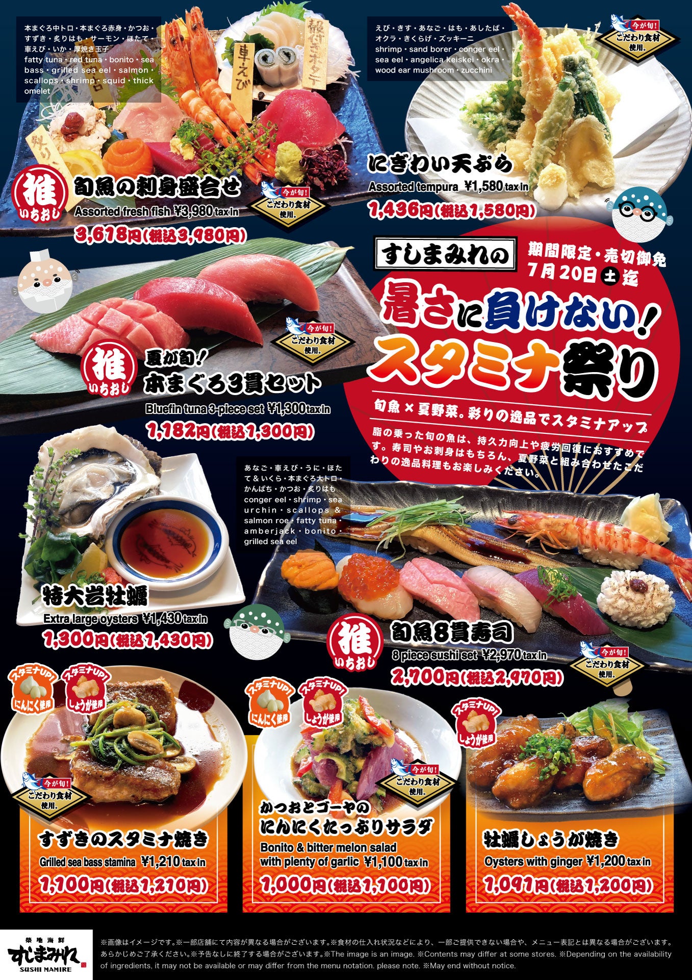 脂の乗った旬の魚は、持久力向上や疲労回復におすすめです。寿司やお刺身はもちろん、夏野菜と組み合わせたこだわりの逸品料理も是非、この機会にご堪能ください。
