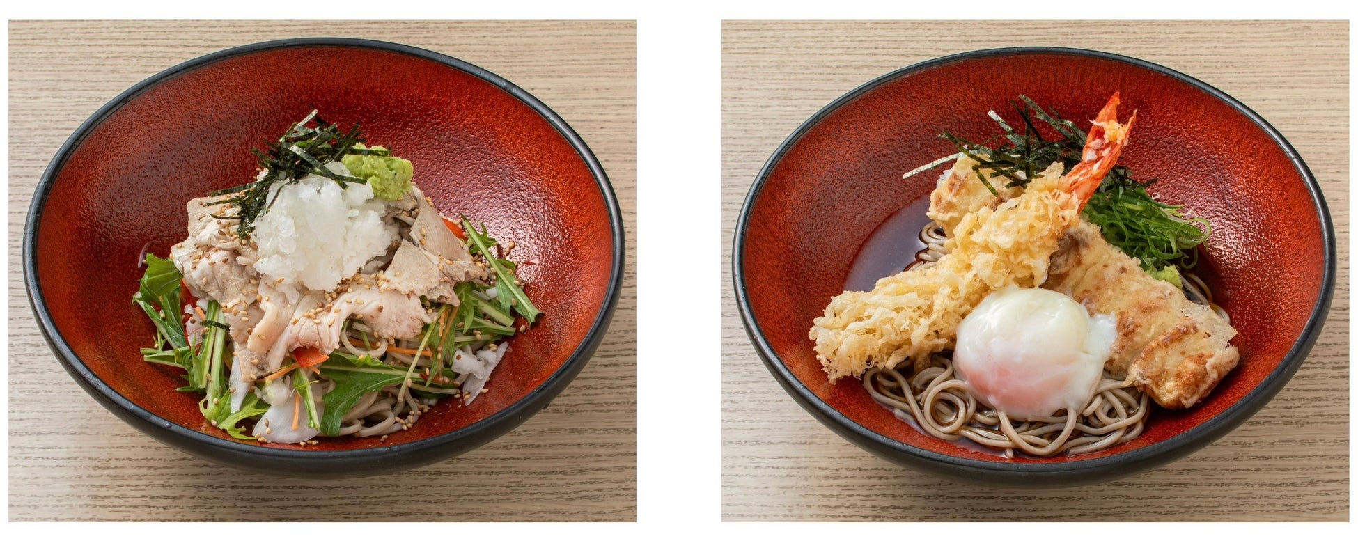 ぶっかけ蕎麦のラインナップは全部で8つとなり、海老天やちくわ、温玉を載せたボリューム感のある商品をはじめ、納豆や茗荷、大葉、梅など、さっぱりと楽しめる商品も展開しております。