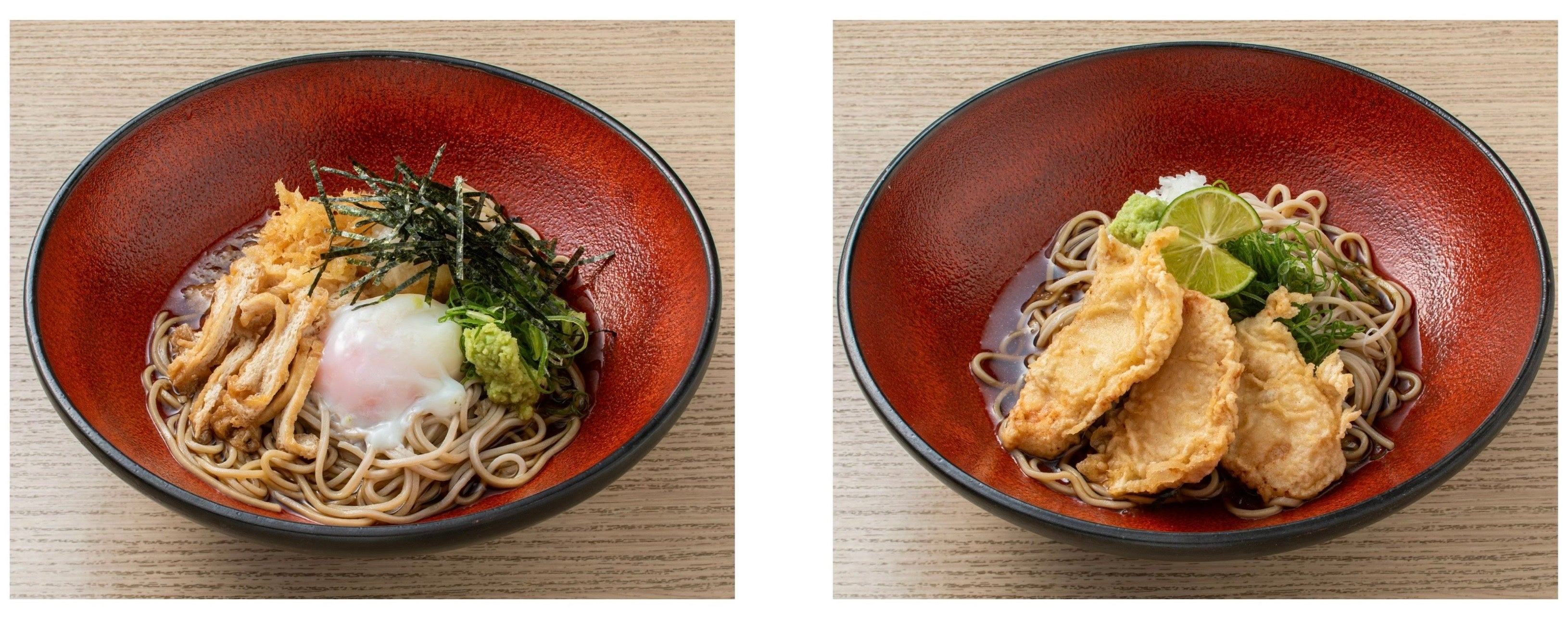 ぶっかけ蕎麦のラインナップは全部で8つとなり、海老天やちくわ、温玉を載せたボリューム感のある商品をはじめ、納豆や茗荷、大葉、梅など、さっぱりと楽しめる商品も展開しております。