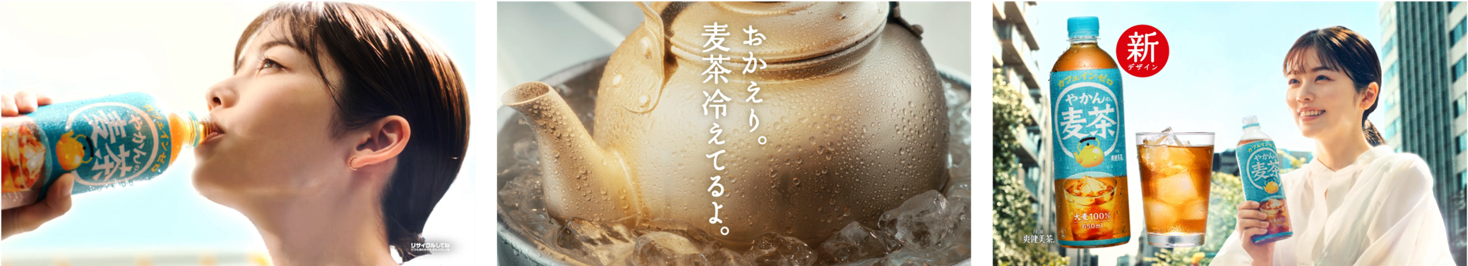 新キャンペーンメッセージである「おかえり。麦茶冷えてるよ。」には、「やかんの麦茶」が丁寧にやかんで煮出した麦茶のような母のぬくもりを思い出させてくれ、喉と心を潤してくれる、そんなメッセージが込められています。